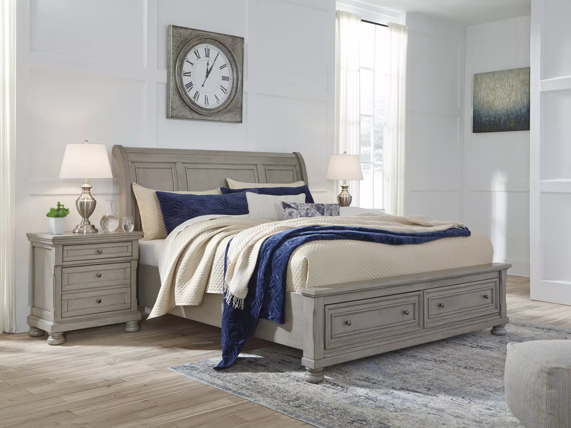 lettner light gray queen rails with roll slats by ashley