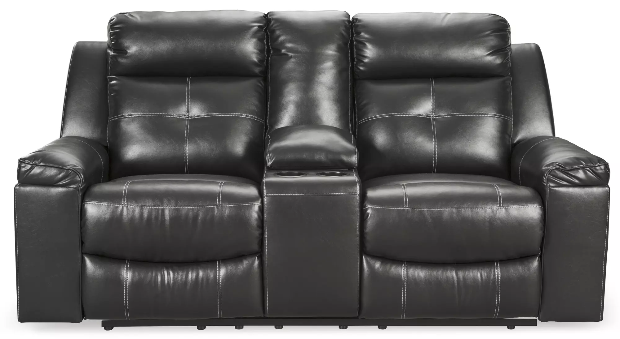 kempten black dbl rec loveseat w/console by ashley
