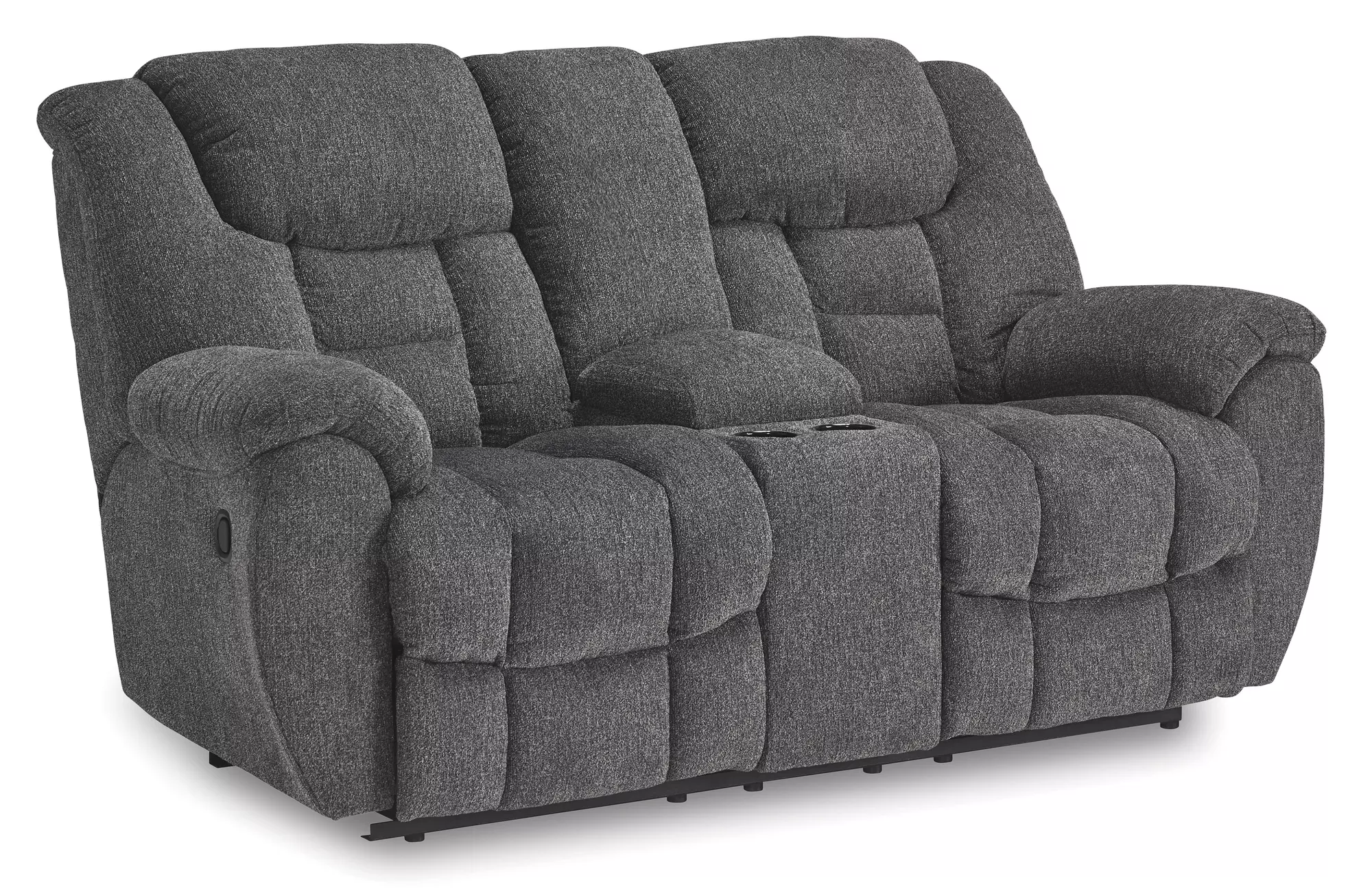 foreside charcoal dbl rec loveseat w/console by ashley