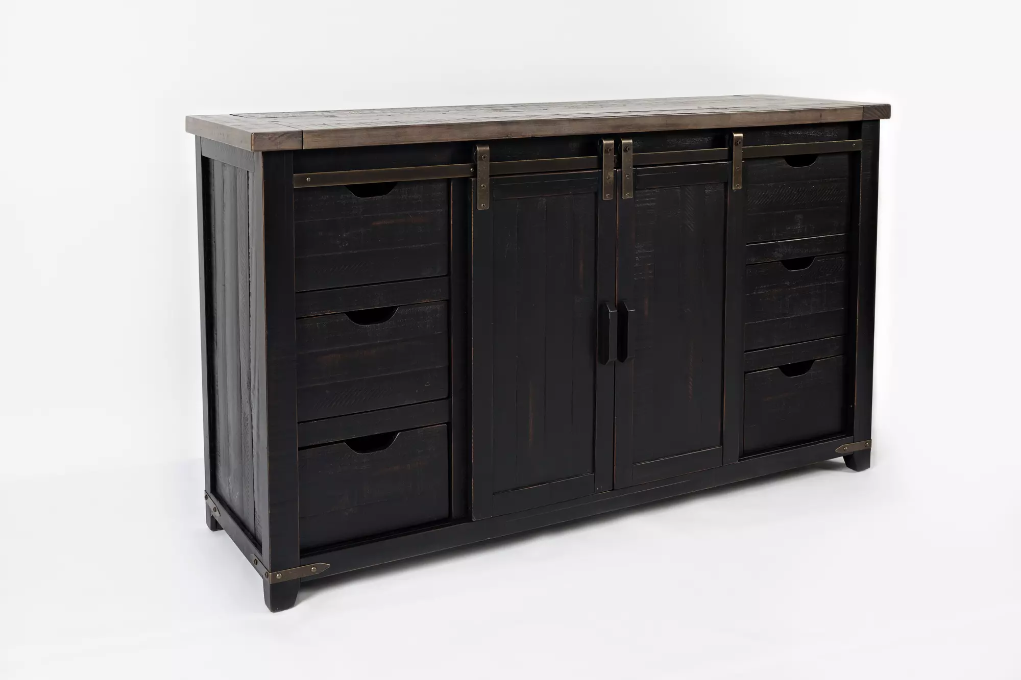 madison case 60" barn door console w/6 drawers - wire management madison county collection by jofran