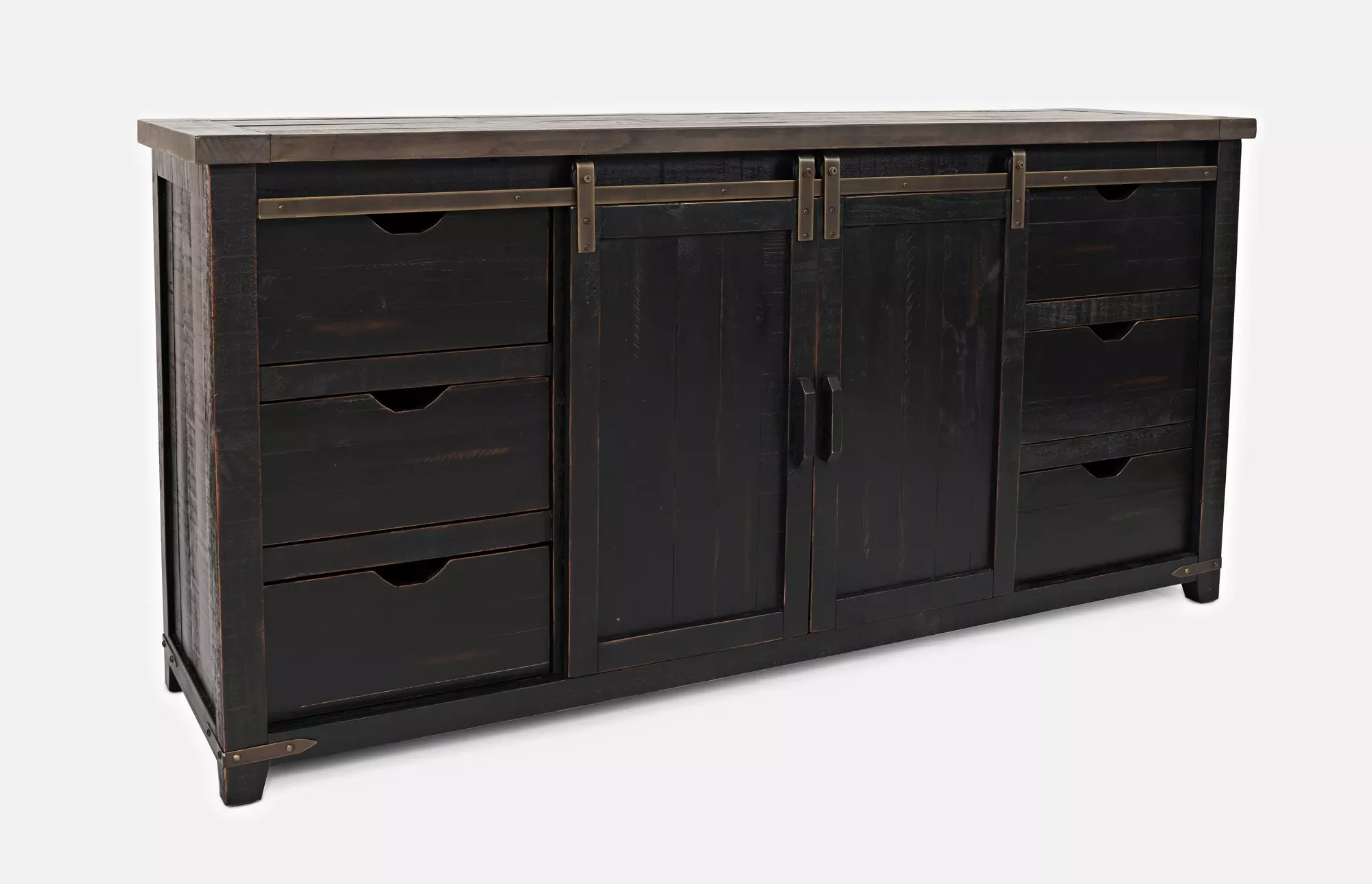 madison case 70" barn door console w/6 drawers - wire management madison county collection by jofran