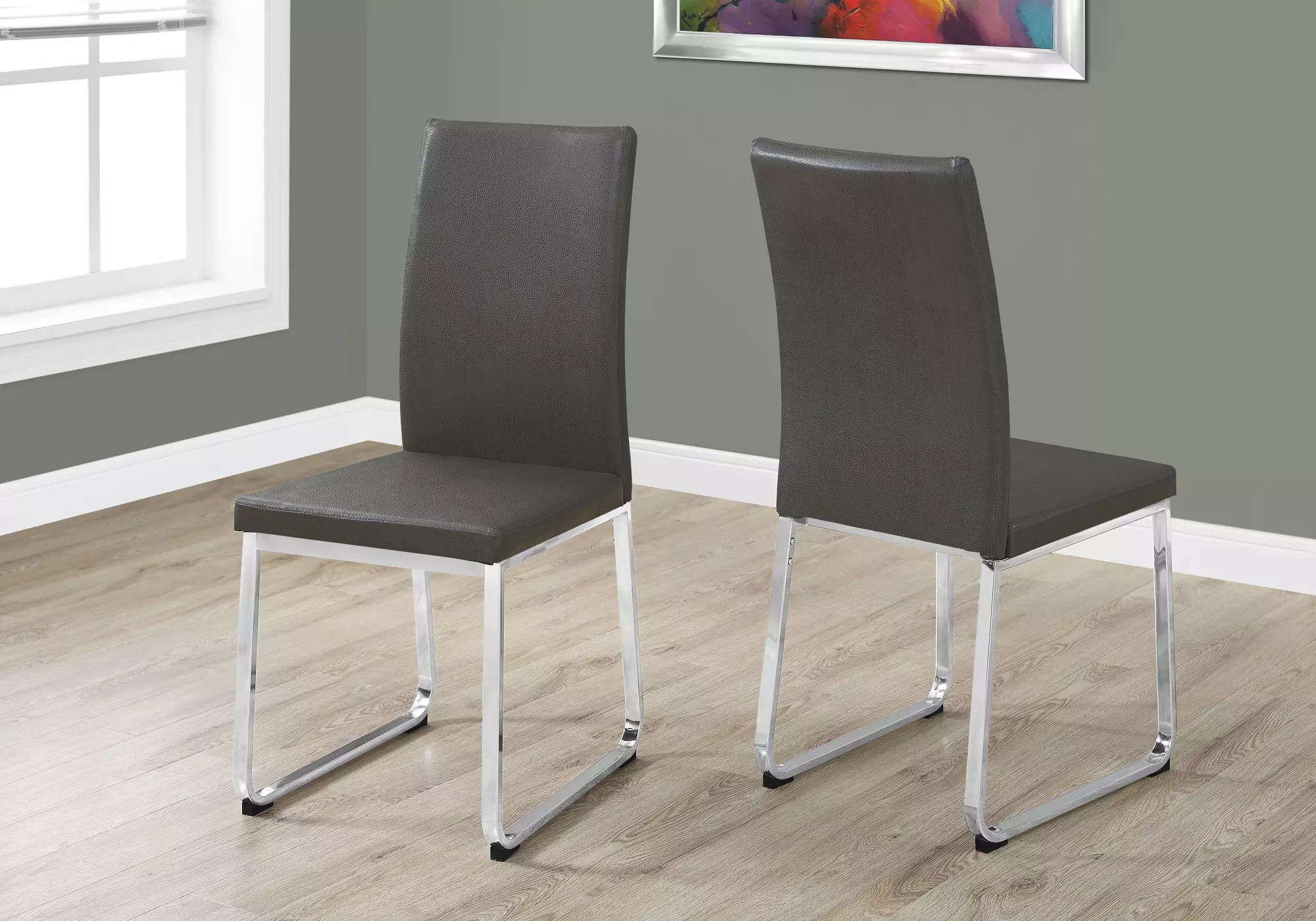 dining chair - 2pcs - 38 h - grey leather-look - chrome by monarch specialties