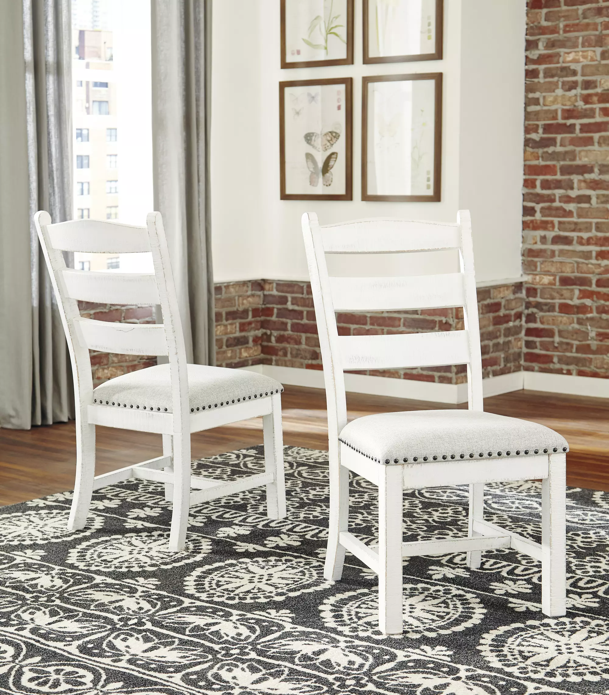 DescriptionWhether you’re pining for cottage charm or modern farmhouse sophistication, this dining room upholstered chair, with its timeless ladderback styling, is something to savor. The vintage white finish exudes a sense of ease that’s made all the more enticing thanks to a cushioned seat wrapped in a soothing gray linen colored textural fabric.