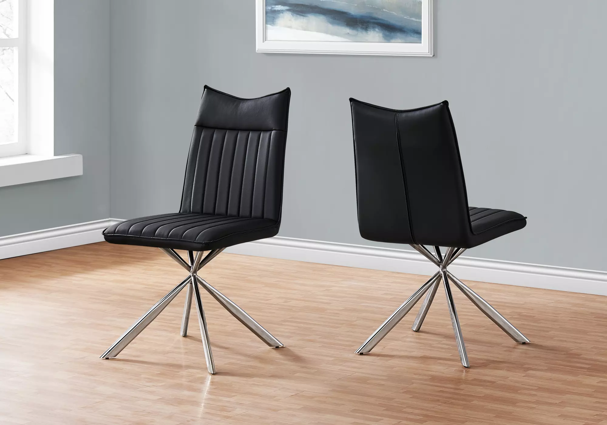dining chair - 2pcs - 36 h - black leather-look - chrome by monarch specialties