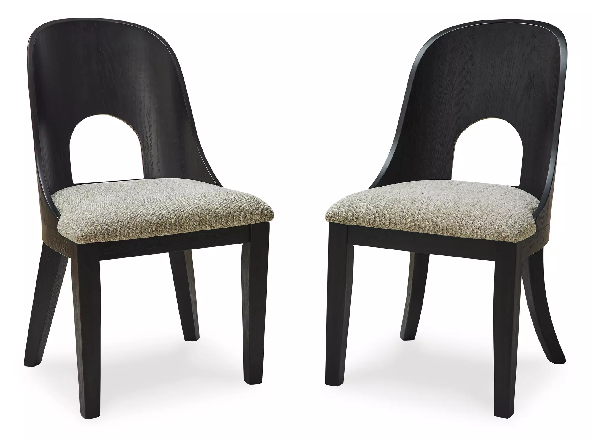 DescriptionInspired by art deco design, this dining chair makes a lasting impression in a simply stunning way. Its magnificent curved silhouette is enhanced with a rich layered black finish on the textured wood grain surface. The chair's ultra-sleek bent back is contoured for comfort, and the cushioned seat is wrapped in herringbone-patterned upholstery that’s so pleasing to the palate. This is the piece you’ve been seeking to elevate your contemporary decor whether you’re dining, listening to your latest playlist or binge-watching with friends.