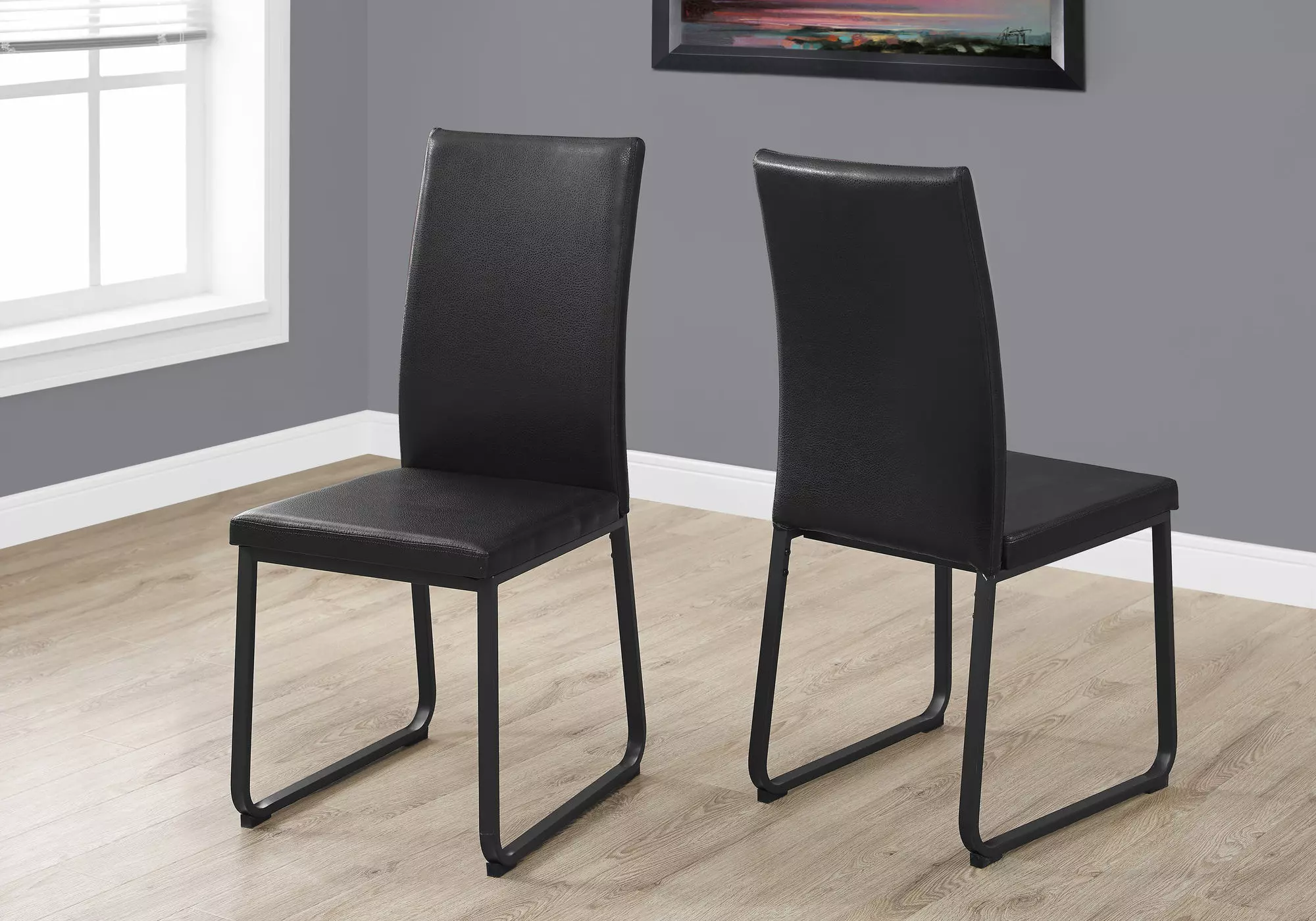 dining chair - 2pcs - 38 h - black leather-look - black by monarch specialties