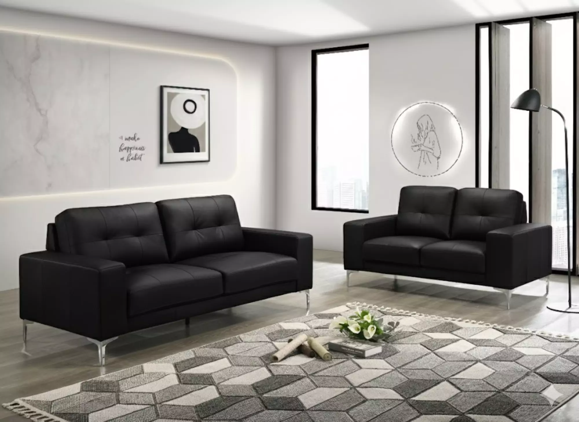 leather sofa black by exact (8019SOFABL)