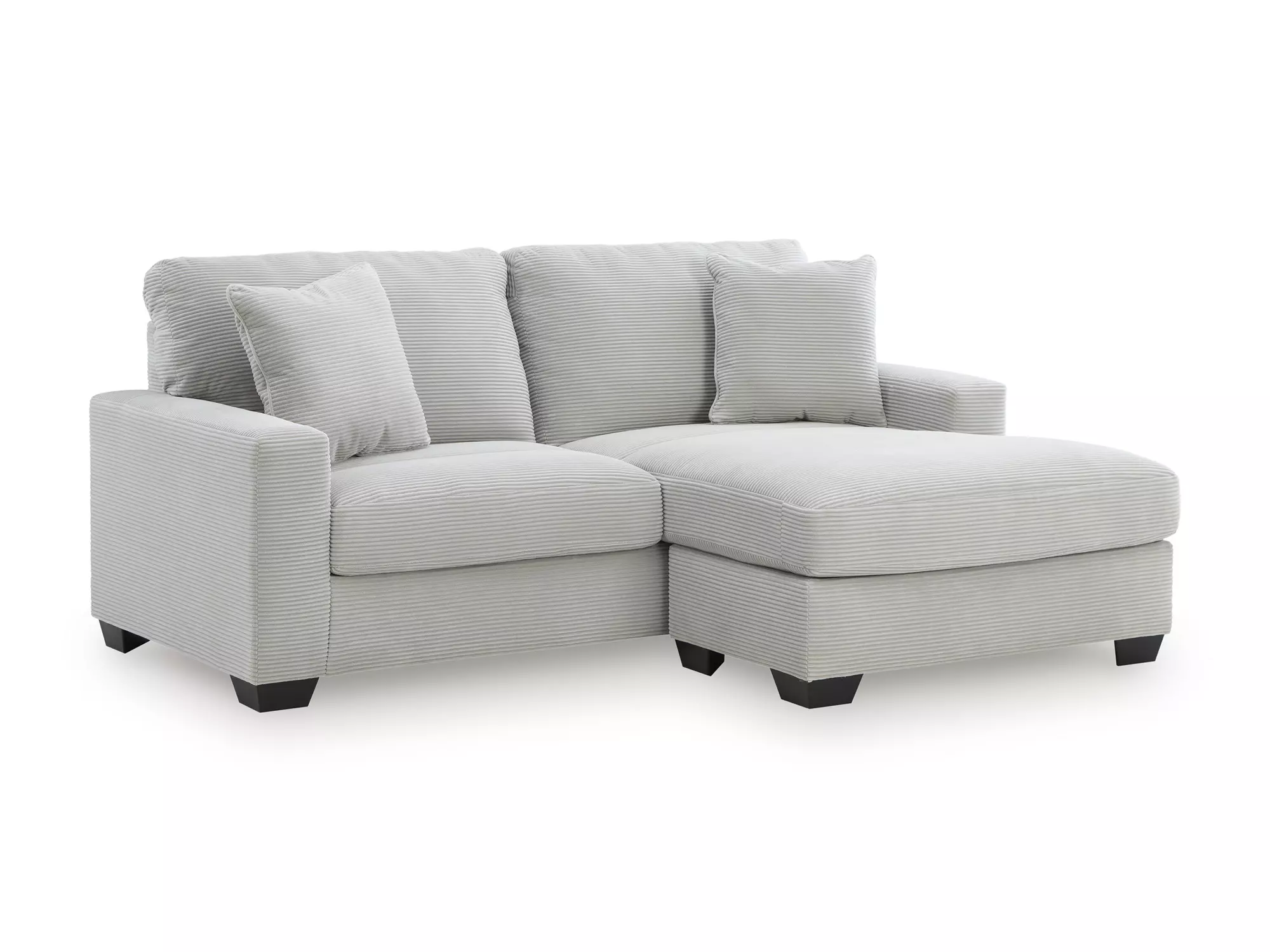 DescriptionThe crisp neutral hue and striking design details of this sofa chaise create a living room that expertly reflects your modern taste. For irresistibly cool textural appeal, the ultra-soft fabric is enhanced by a small-scale corded look. With a clean-lined silhouette complete with track arms, this sofa chaise allows you to take a trend-right approach to everyday living.
