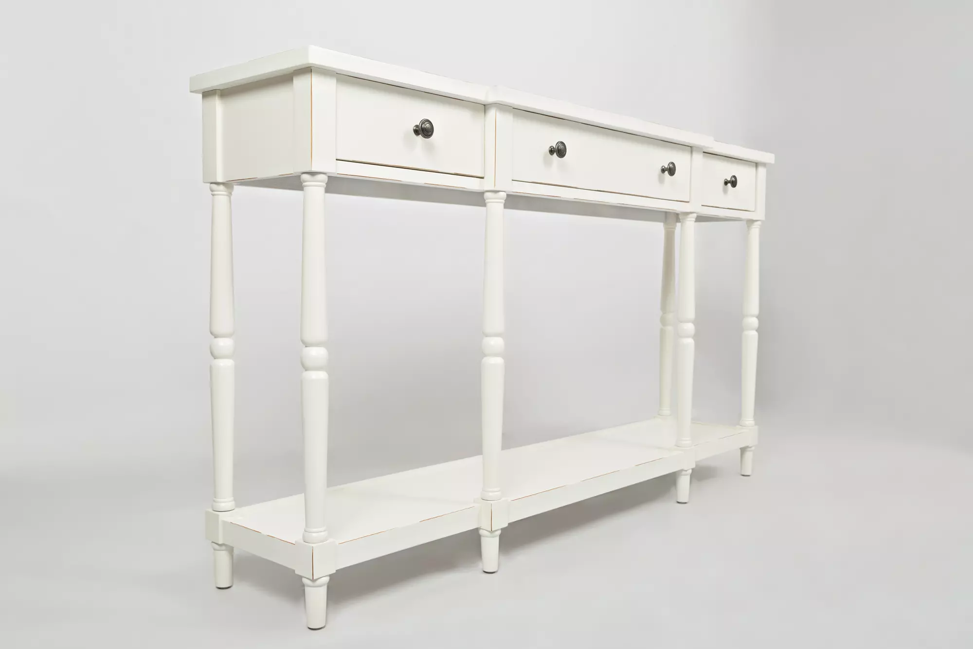 stately home 60" breakfront console w/3 drawers, turned legs- antique white finish stately home collection by jofran (1630-60)