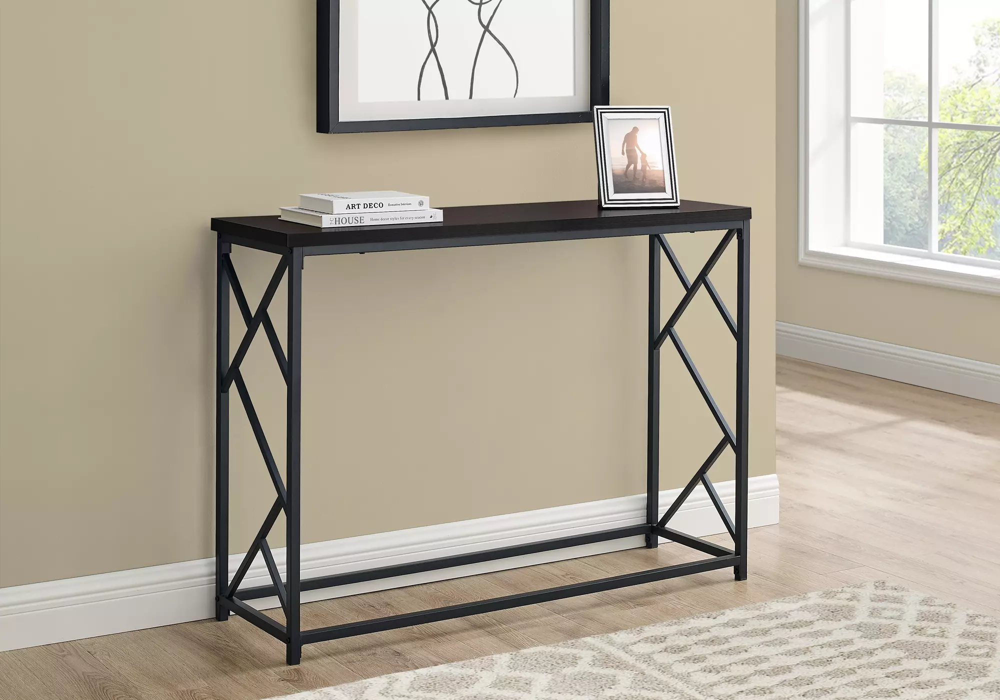 accent table - 44 l - espresso - black metal hall console by monarch specialties