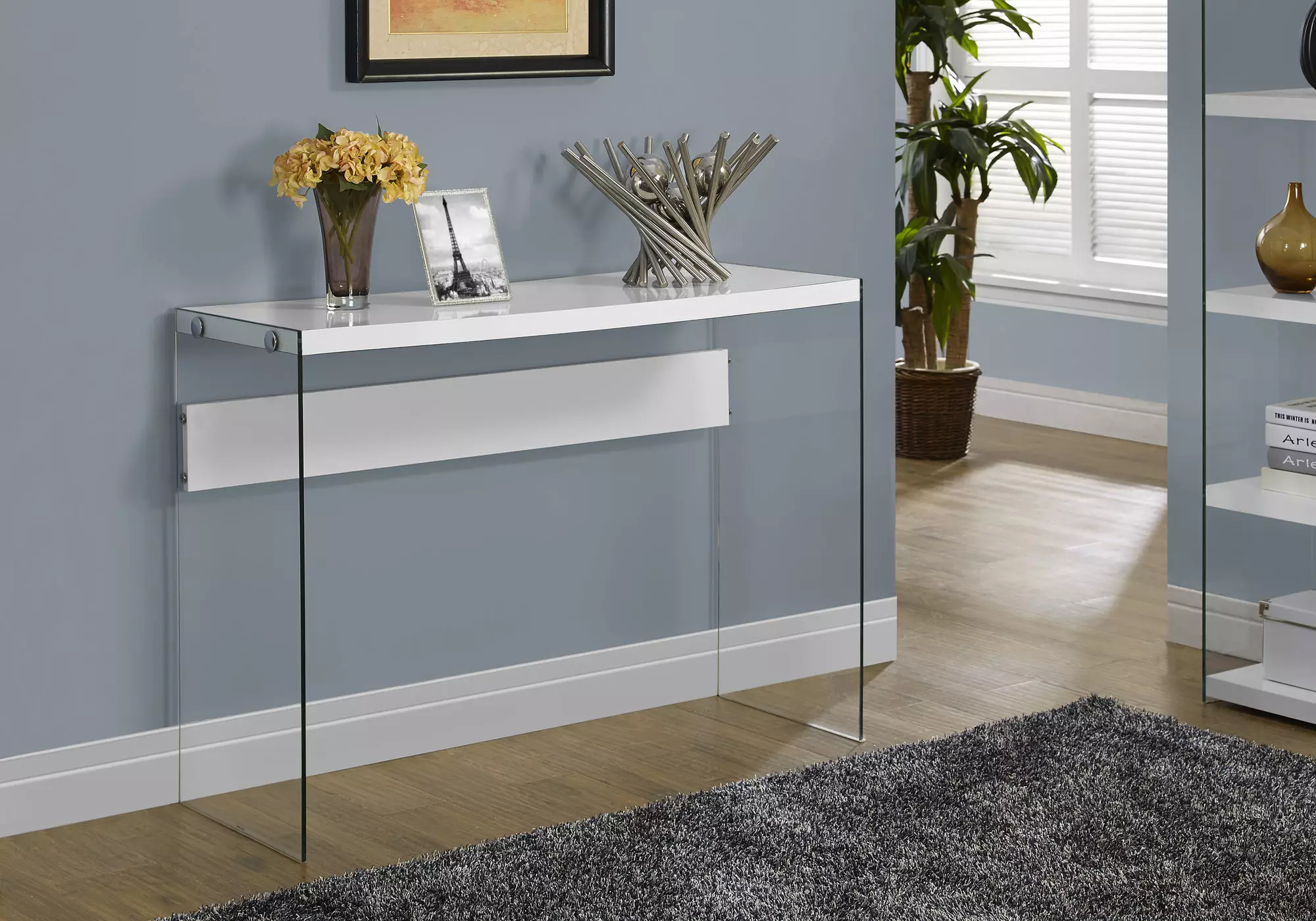 accent table - 44 l - glossy white - tempered glass by monarch specialties