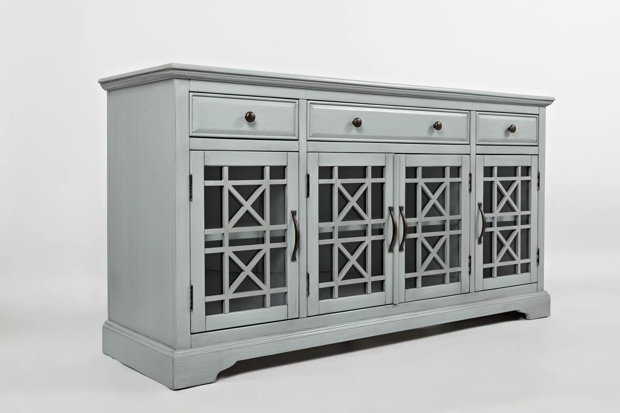 craftsman 60" media unit w/4 glass doors, 3 drawers- adj shelves, wire mngmnt craftsman collection by jofran (375-60)