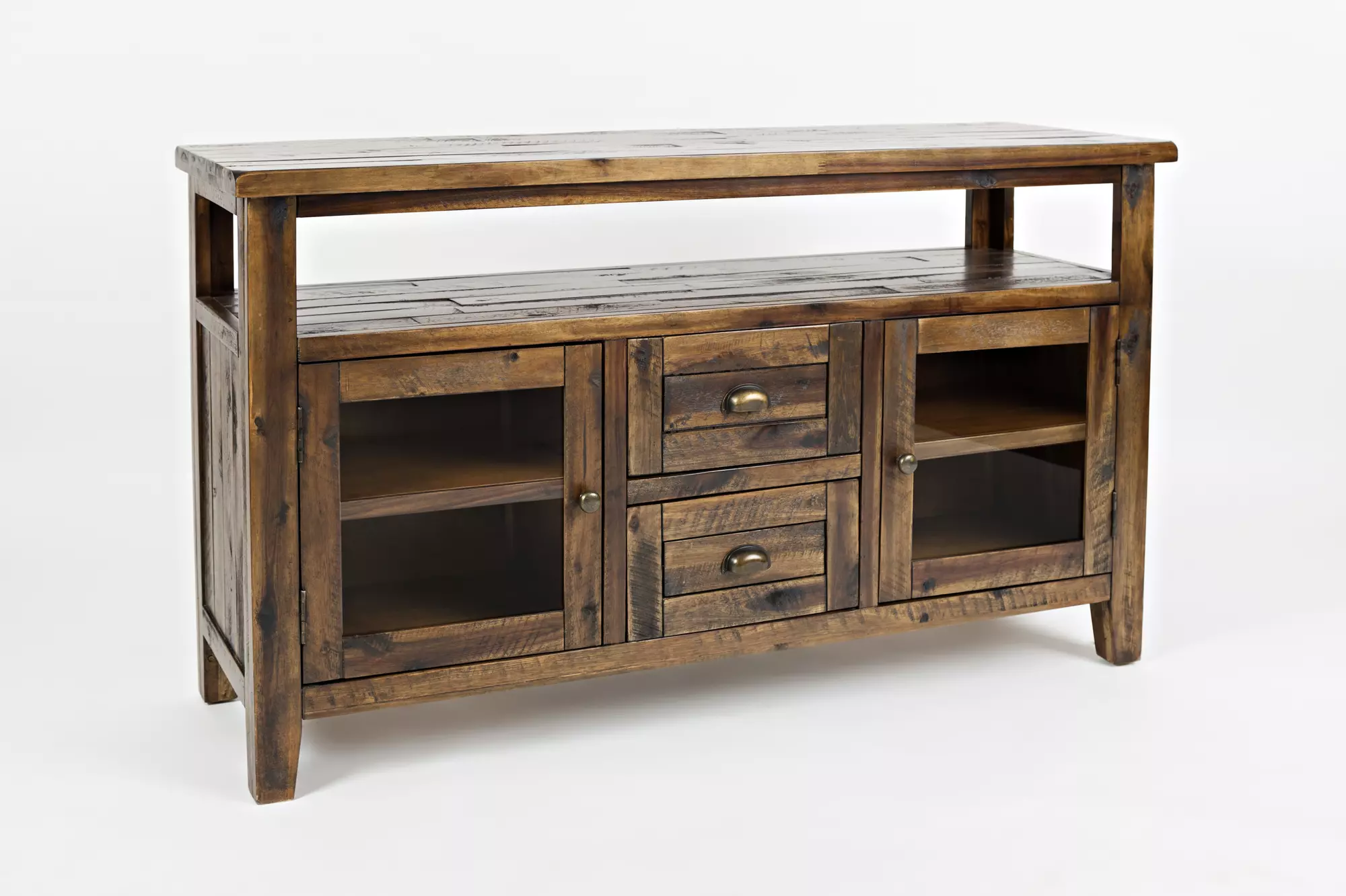 artisan's craft storage console w/2 glass doors, 2 shelves, open storage artisan's craft collection by jofran (1742-54)