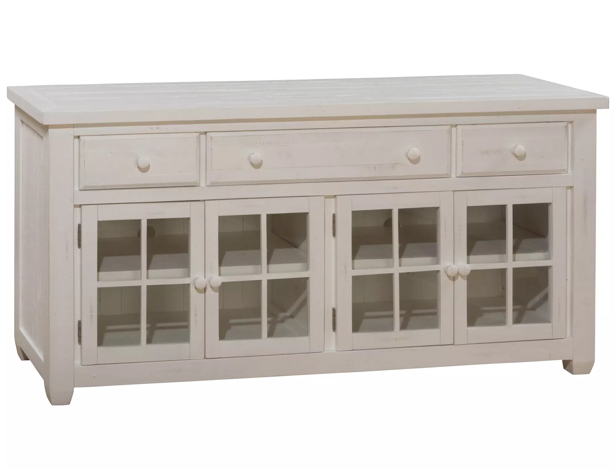 madaket 66" media unit w/3 drawers, 4 glass doors - full ext drawers madaket collection by jofran (648-66)