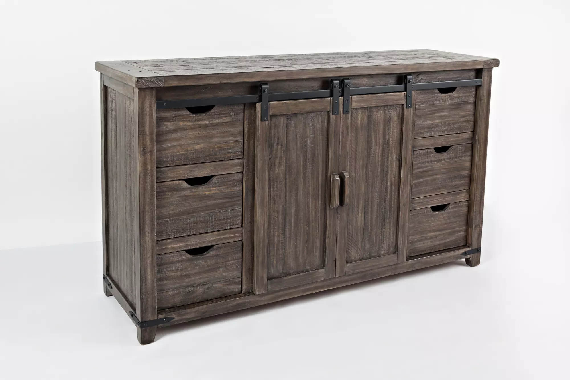 madison case 60" barn door console w/6 drawers - wire management madison county collection by jofran