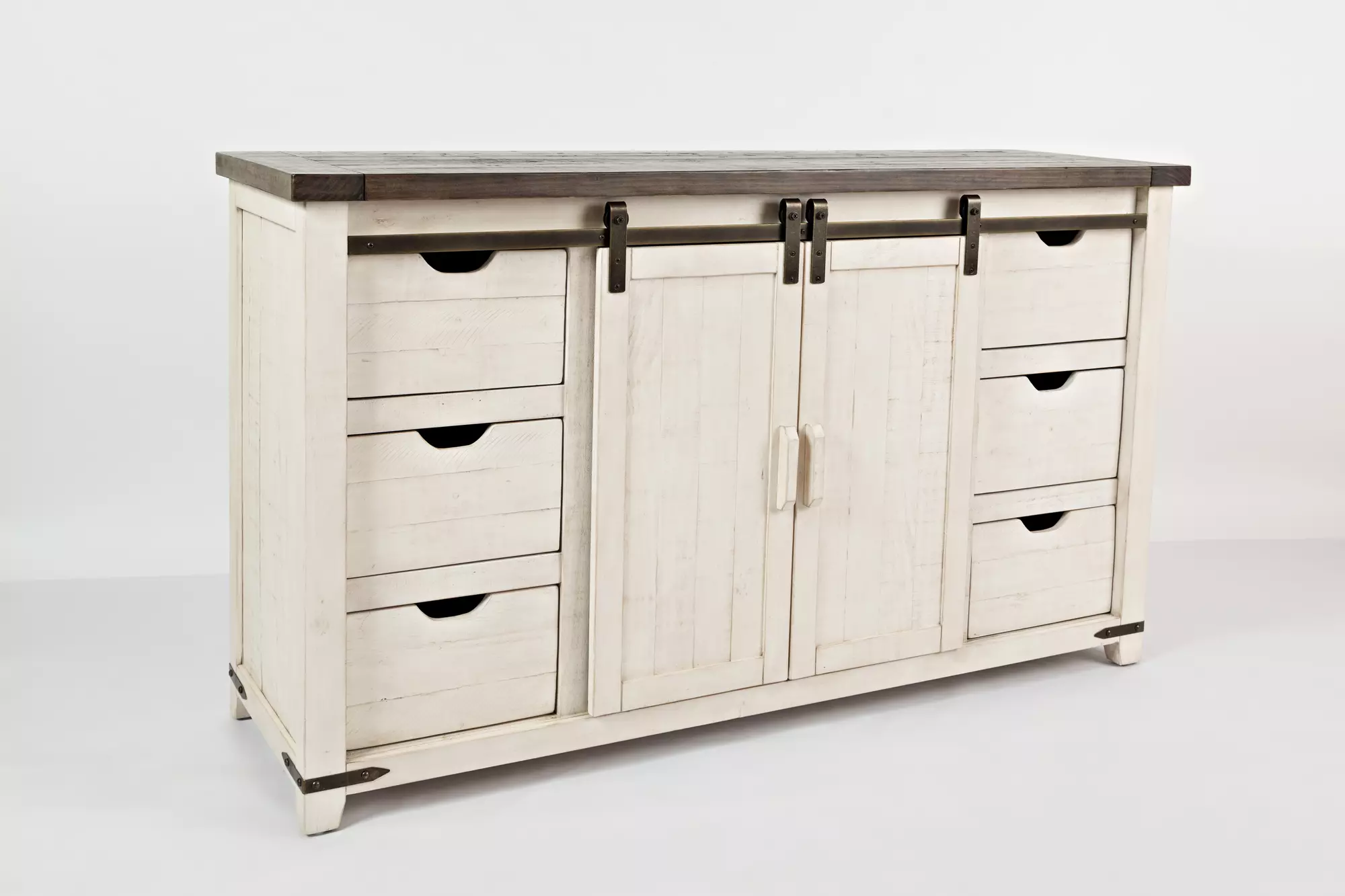 madison case 60" barn door console w/6 drawers - wire management madison county collection by jofran