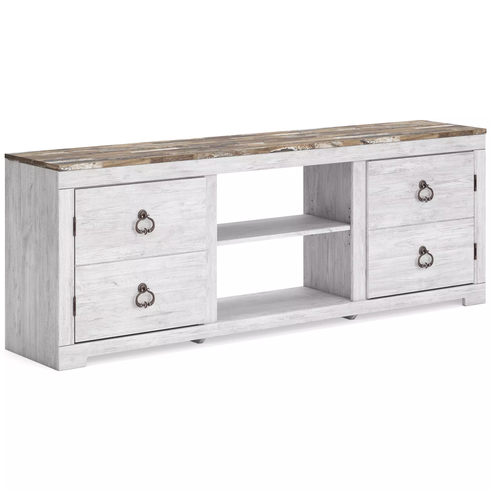 willowton whitewash lg tv stand w/fireplace option by ashley