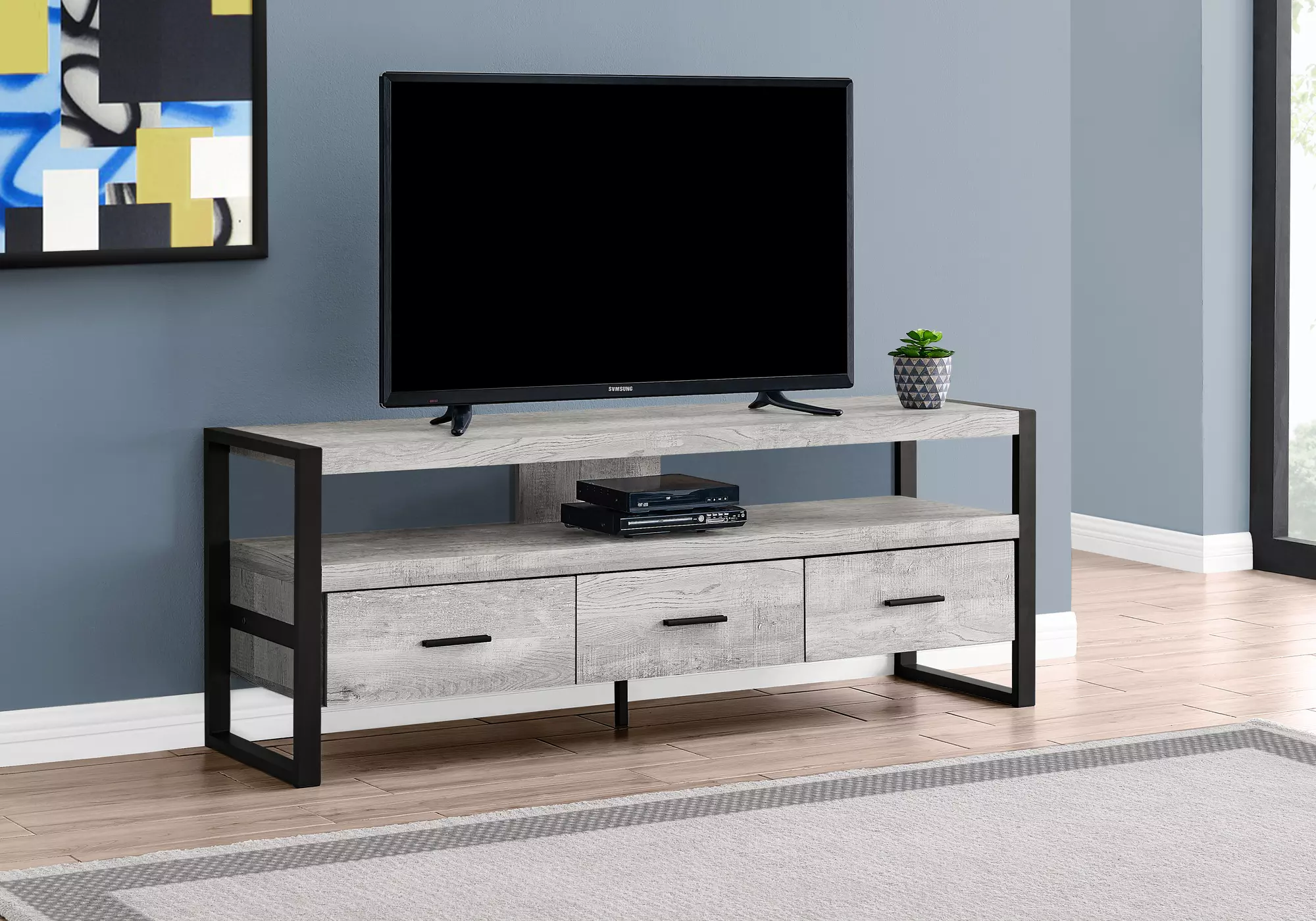 tv stand - 60 l - grey reclaimed wood-look - 3 drawers by monarch specialties