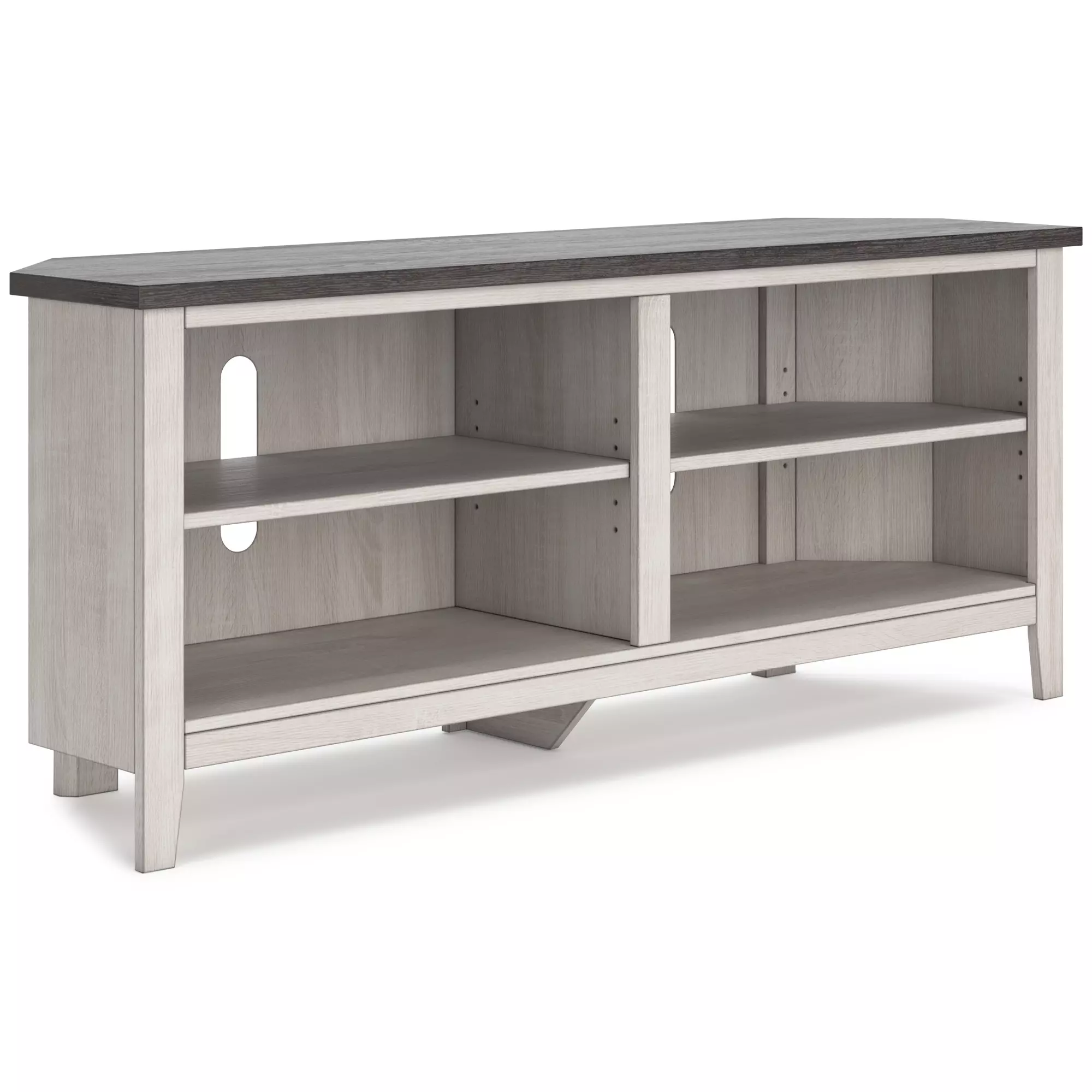 dorrinson two-tone medium corner tv stand by ashley