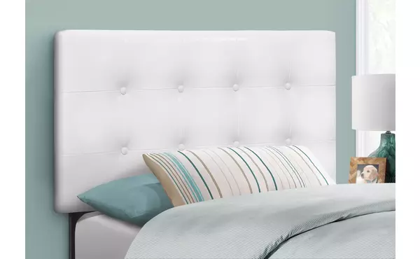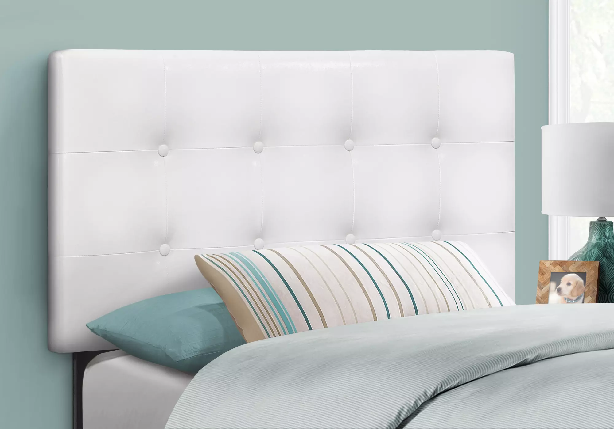 bed - twin size - white leather-look headboard only by monarch specialties (I6002T)