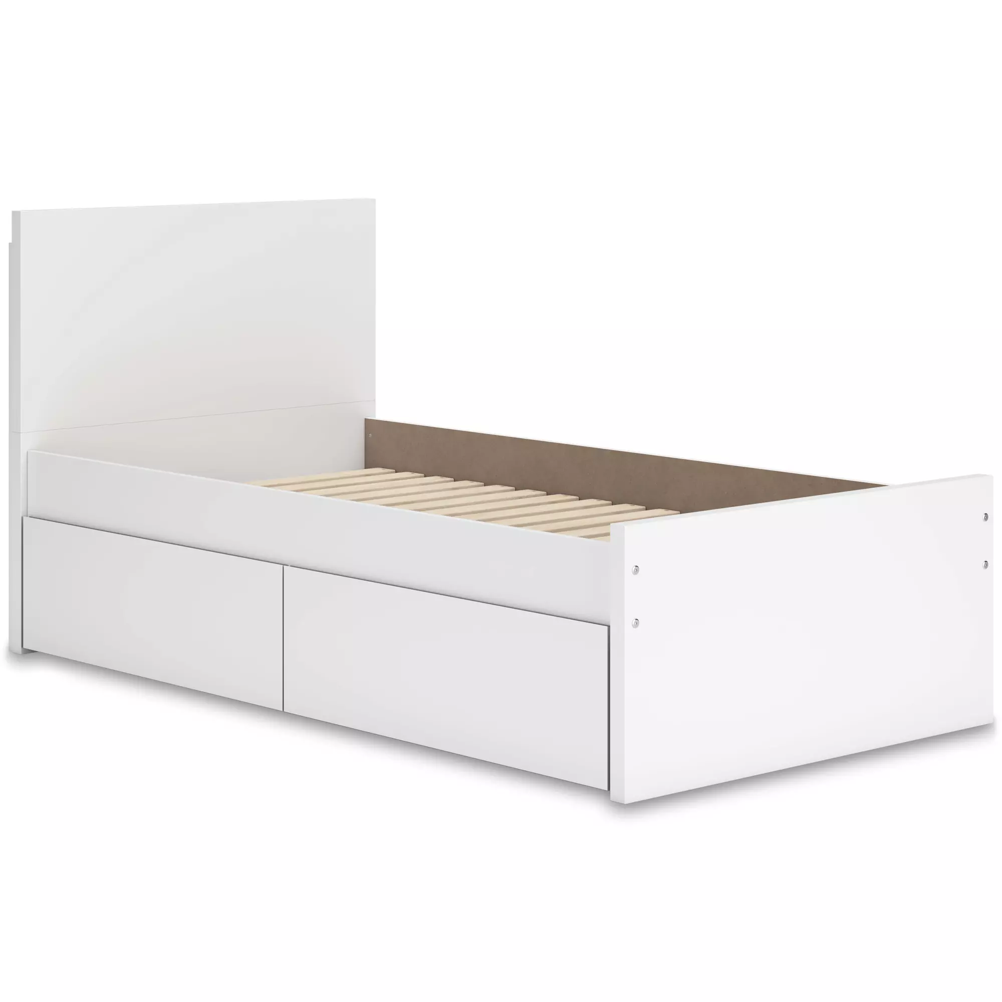 DescriptionThis set of twin platform bed panels is made with engineered wood (MDF/particleboard/plywood) and decorative laminate. Pairs with other items in the series to make a bed kit.
