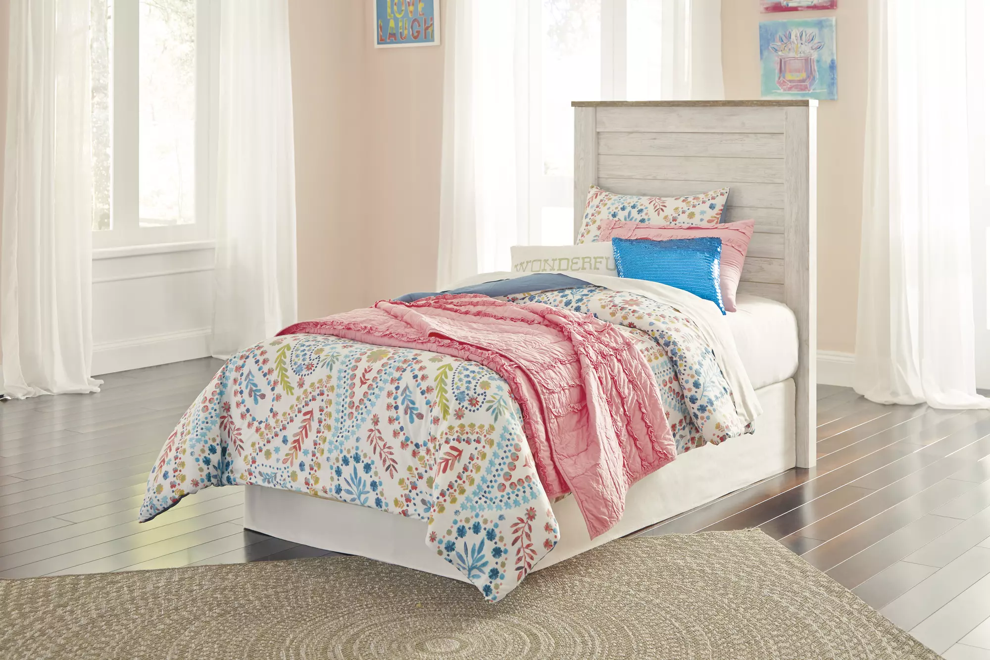 DescriptionThe ultimate look for a beach cottage or shabby chic inspired retreat, this twin panel headboard carries you away to a dreamy time and place. Its driftwoody whitewash finish is wonderfully easy on the eyes. Faux plank detailing incorporates a classically rustic touch that’s so homey and comforting. Mattress, bed frame and foundation/box spring sold separately.