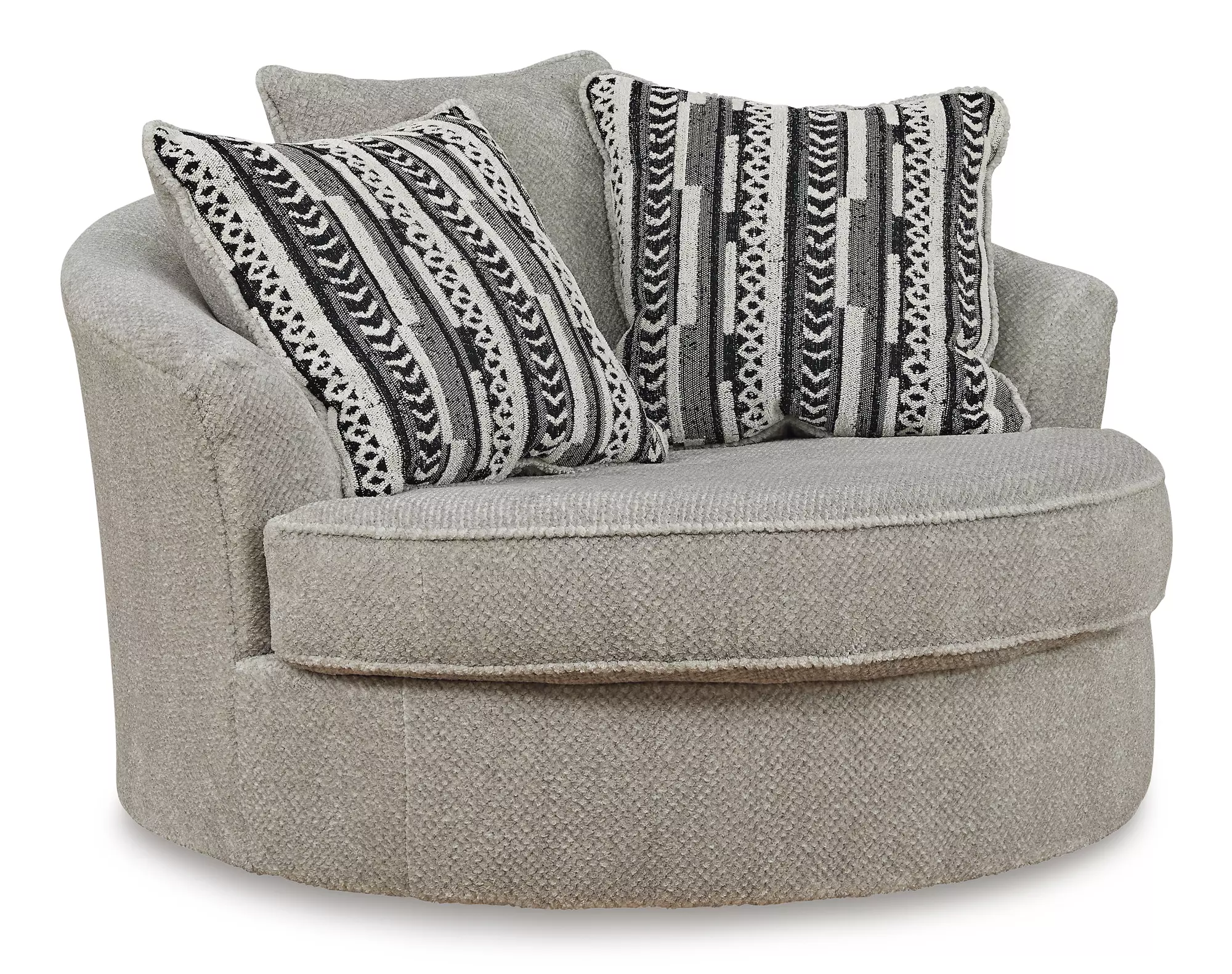 DescriptionThis oversized swivel accent chair caters to your need for contemporary comfort. Large in scale and decked out in feel-good fabric, it gives you space to sprawl out. And the 360-degree swivel motion makes it easy to view the TV or chat with others in your seating area. Quality time has never been so cozy.
