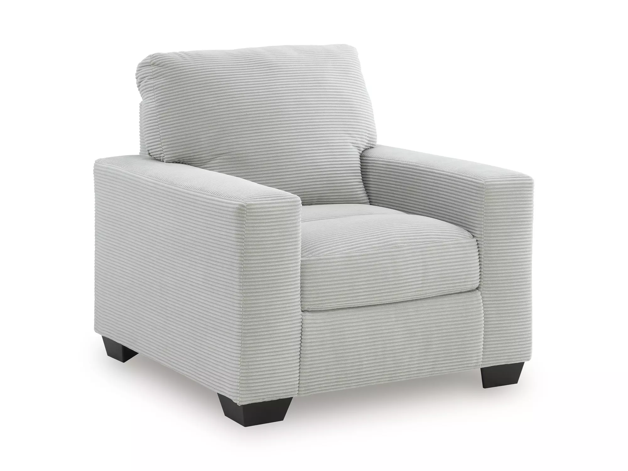 DescriptionThe crisp neutral hue and striking design details of this chair create a living room that expertly reflects your modern taste. For irresistibly cool textural appeal, the ultra-soft fabric is enhanced by a small-scale corded look. With a clean-lined silhouette complete with track arms, this chair allows you to take a trend-right approach to everyday living.
