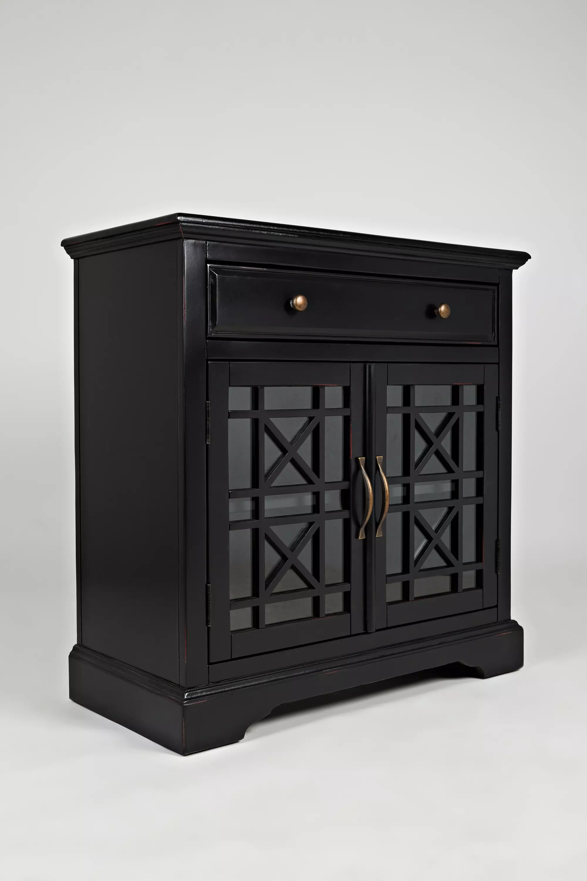craftsman 32" accent cabinet w/2 glass doors, drawer- fixed shelf craftsman collection by jofran