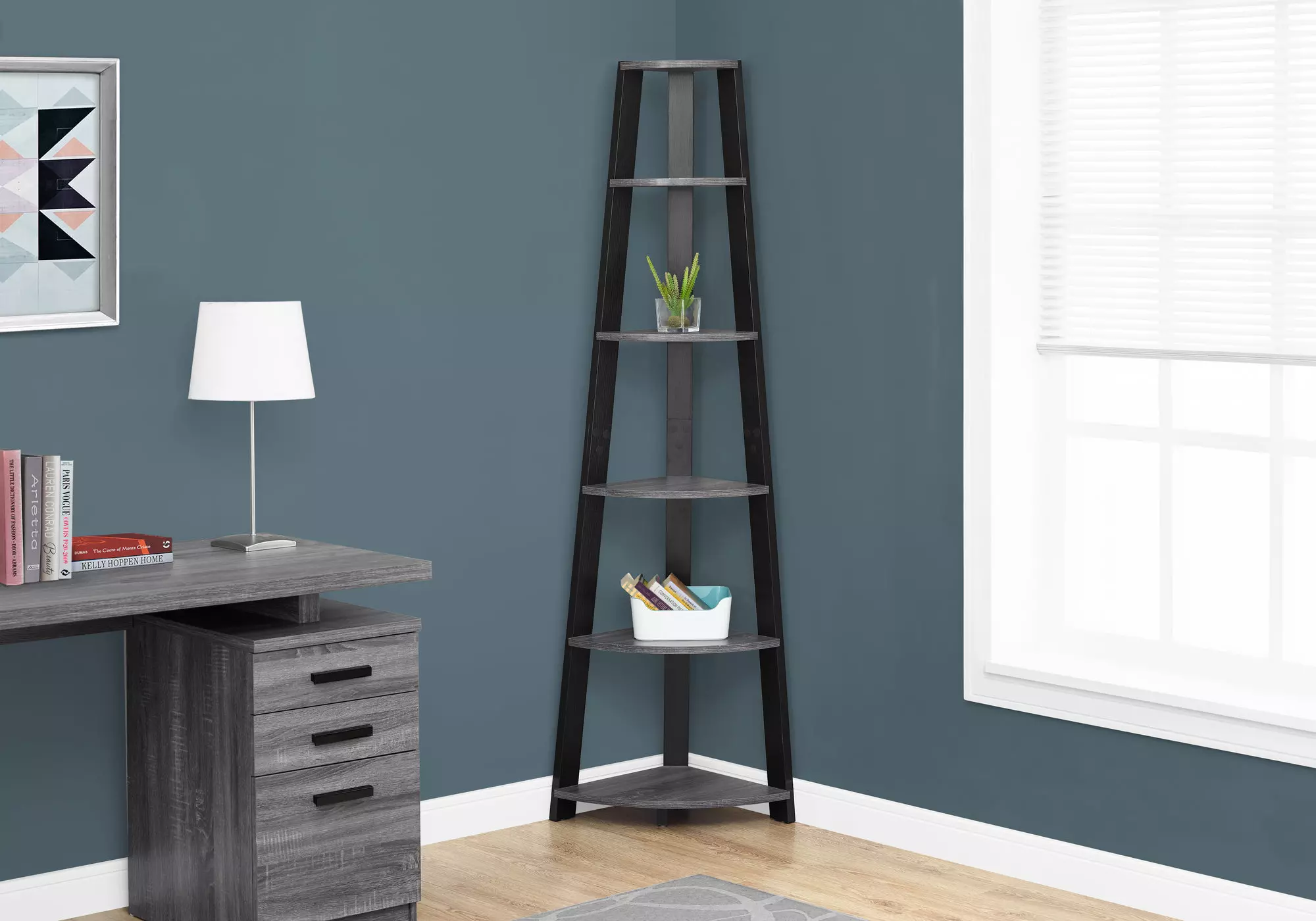 bookcase - 72 h - grey-black corner accent etagere by monarch specialties