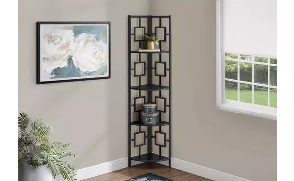 bookcase - 62 h - black - black metal corner etagere by monarch specialties (I3610)