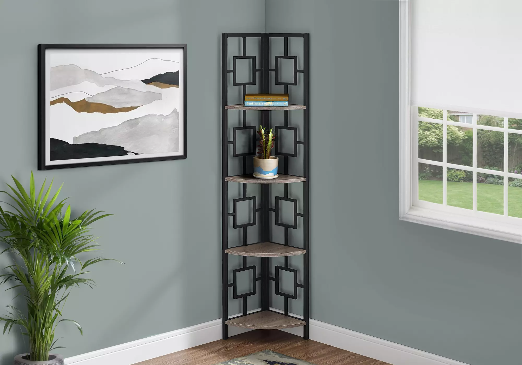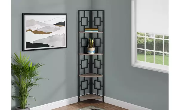 bookcase - 62 h - dark taupe - black metal corner etagere by monarch specialties (I3611)