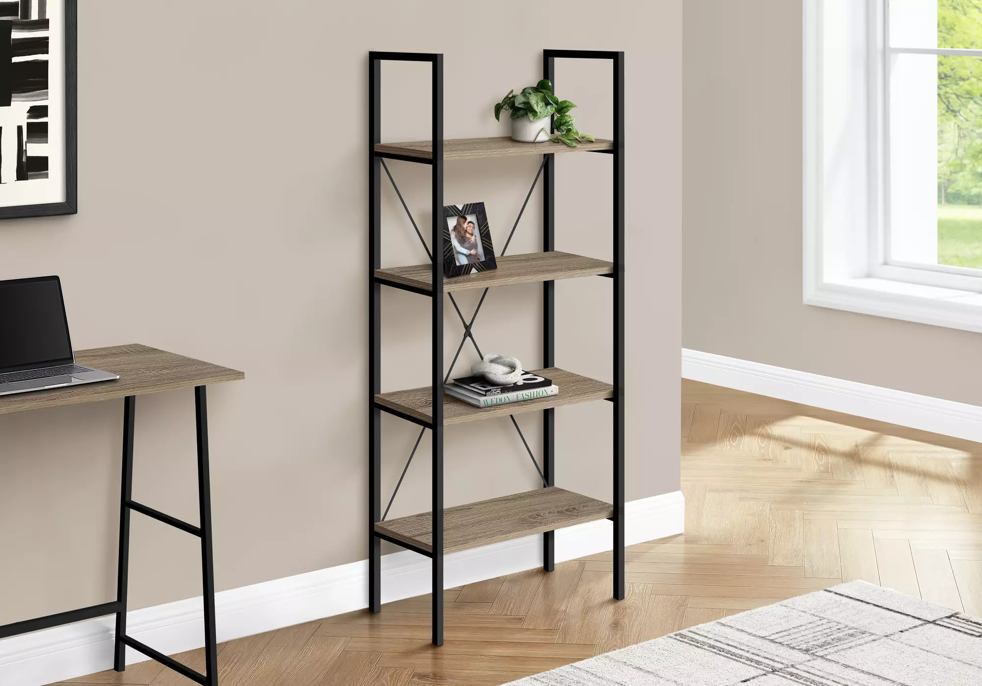 bookcase - 48 h - dark taupe - black metal by monarch specialties (I7800)