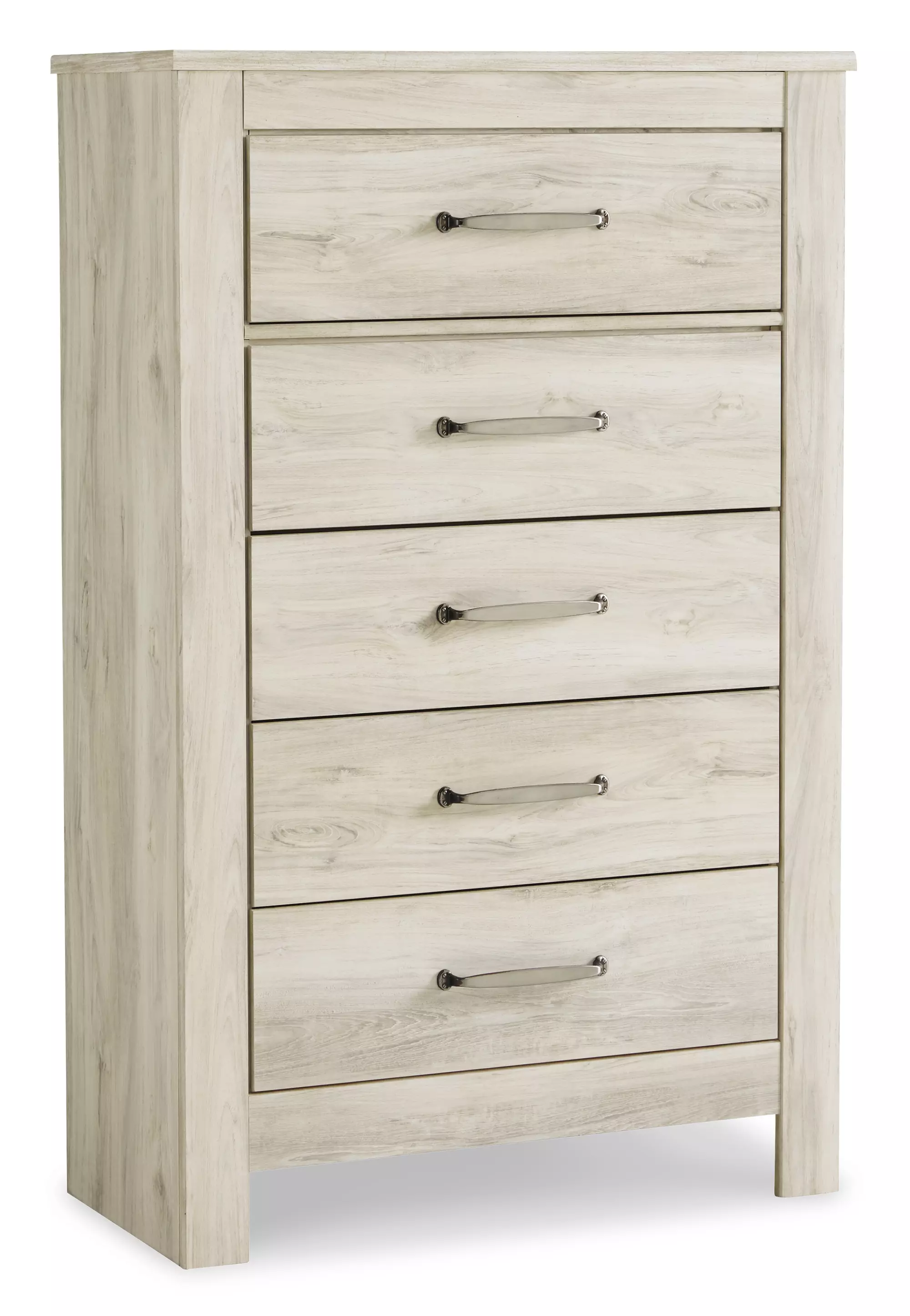 bellaby whitewash five drawer chest by ashley (B331-46)