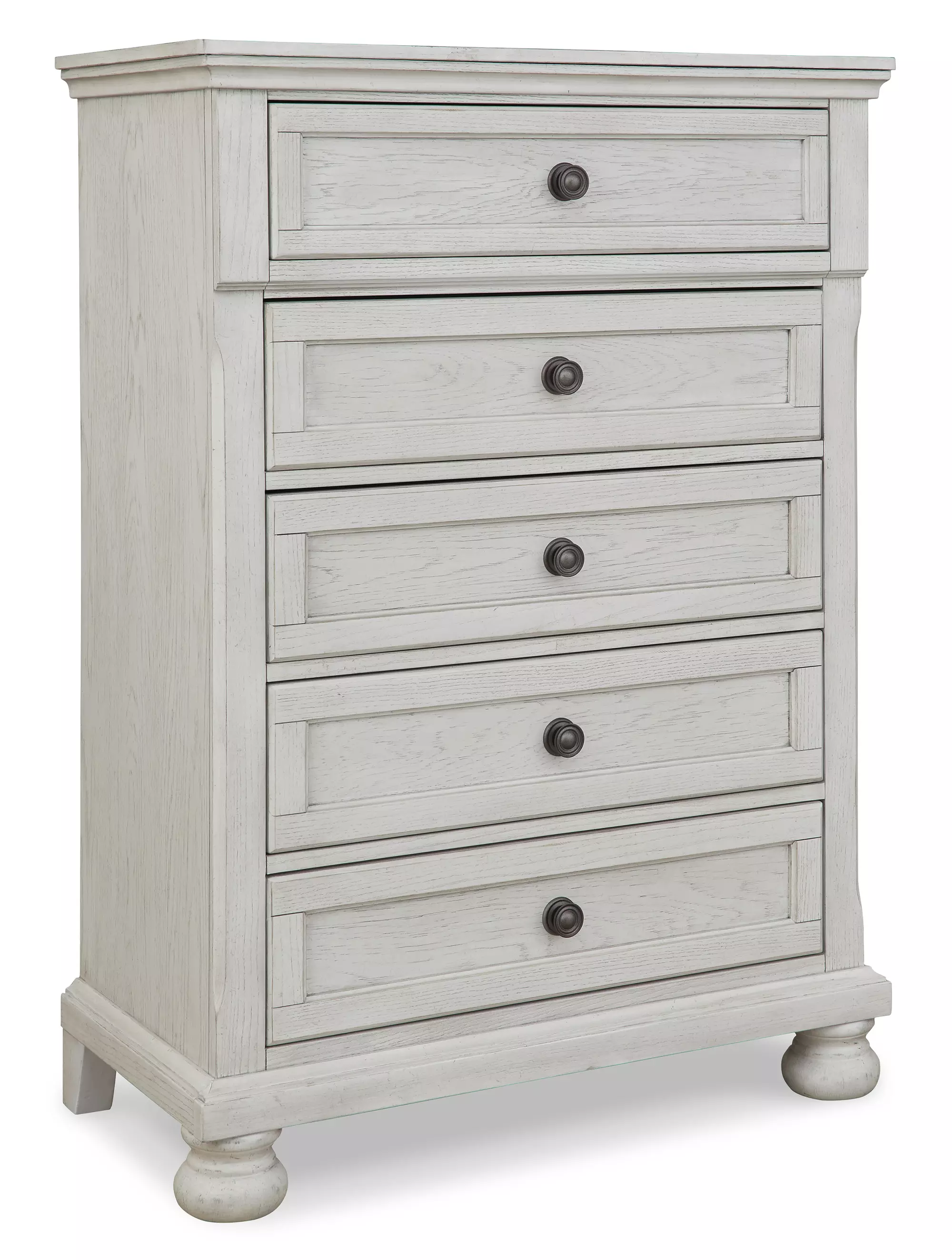 robbinsdale antique white five drawer chest by ashley (B742-45)