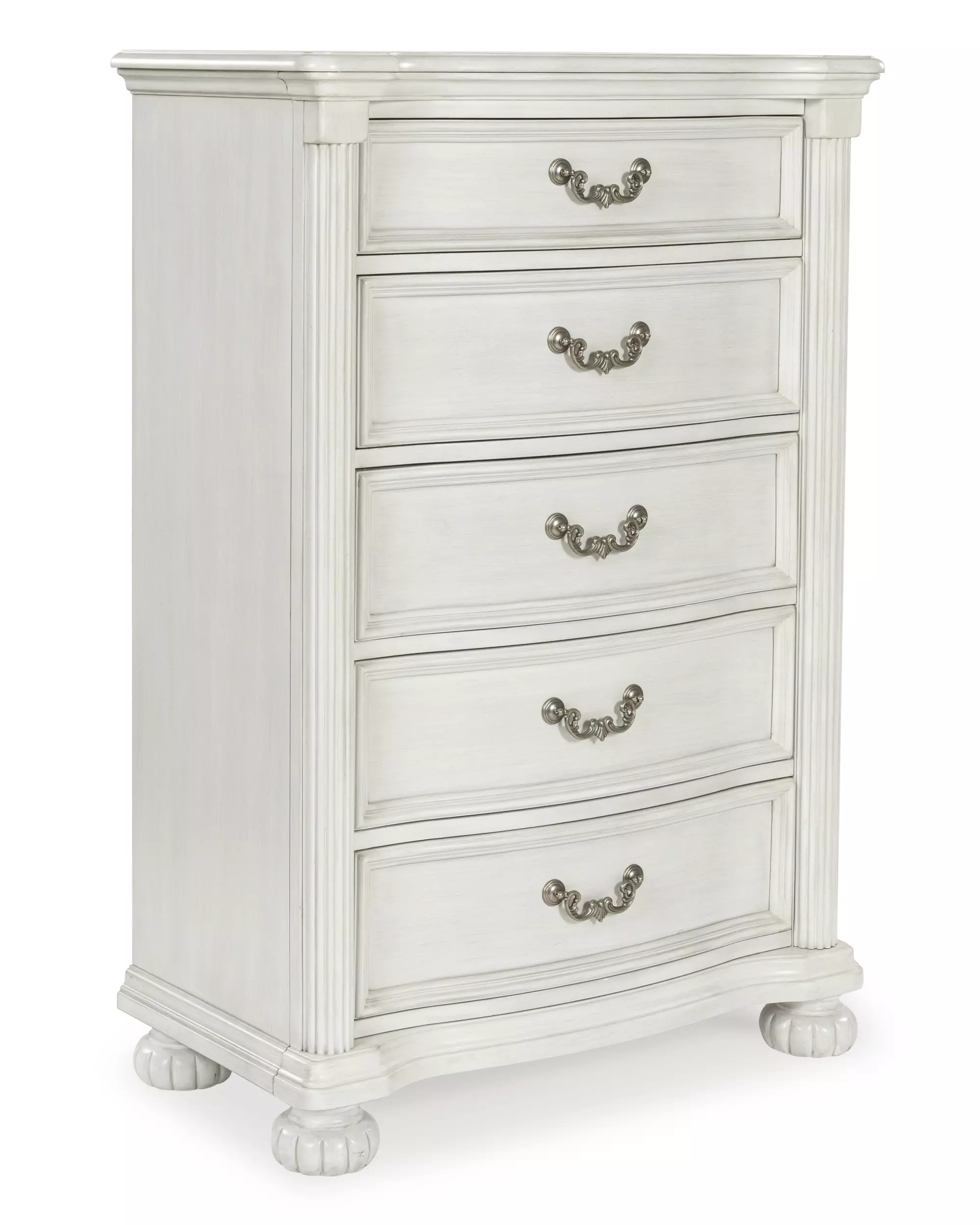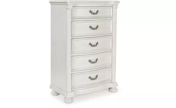 montelaine antique white five drawer chest by ashley (B795-46)