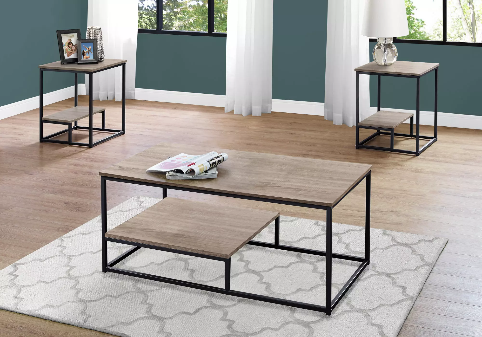 table set - 3pcs set - dark taupe - black metal by monarch specialties