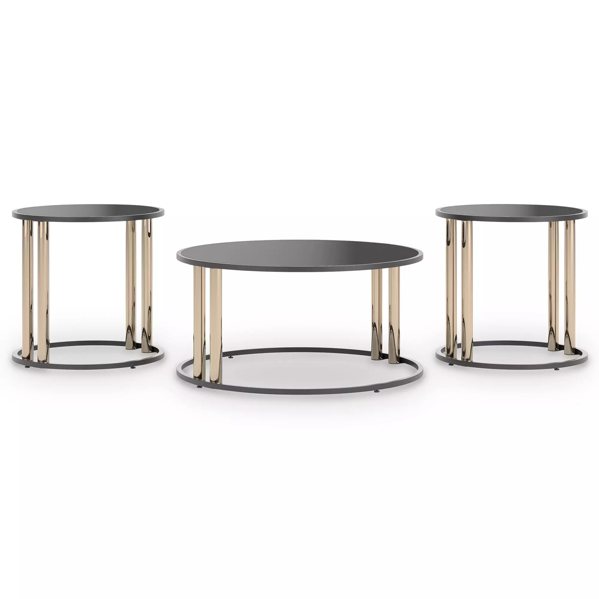 hannerly black/gold finish occasional table set (3/cn) by ashley (T219-13)