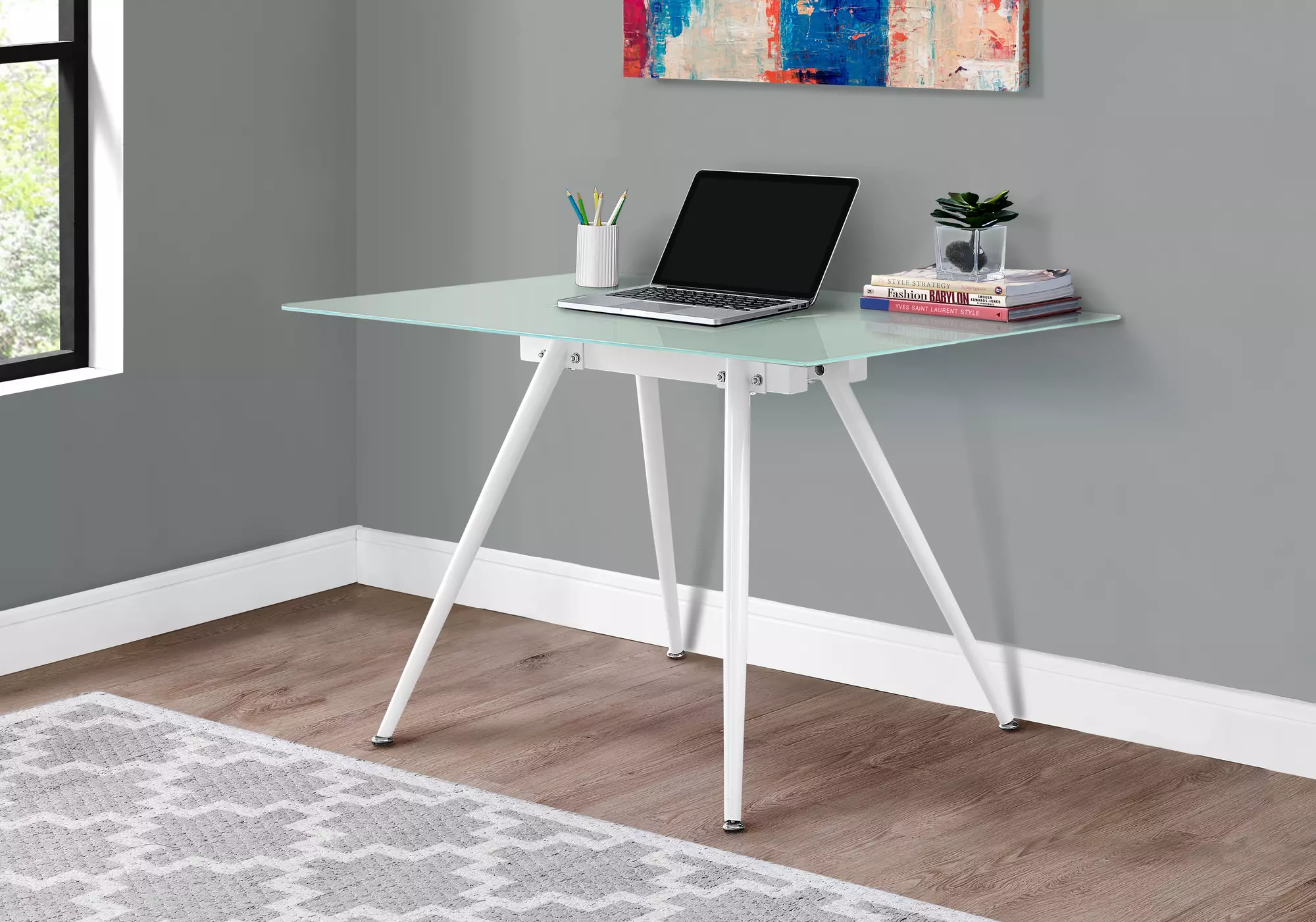 computer desk - 28 x 48 - white - 8mm tempered glass by monarch specialties