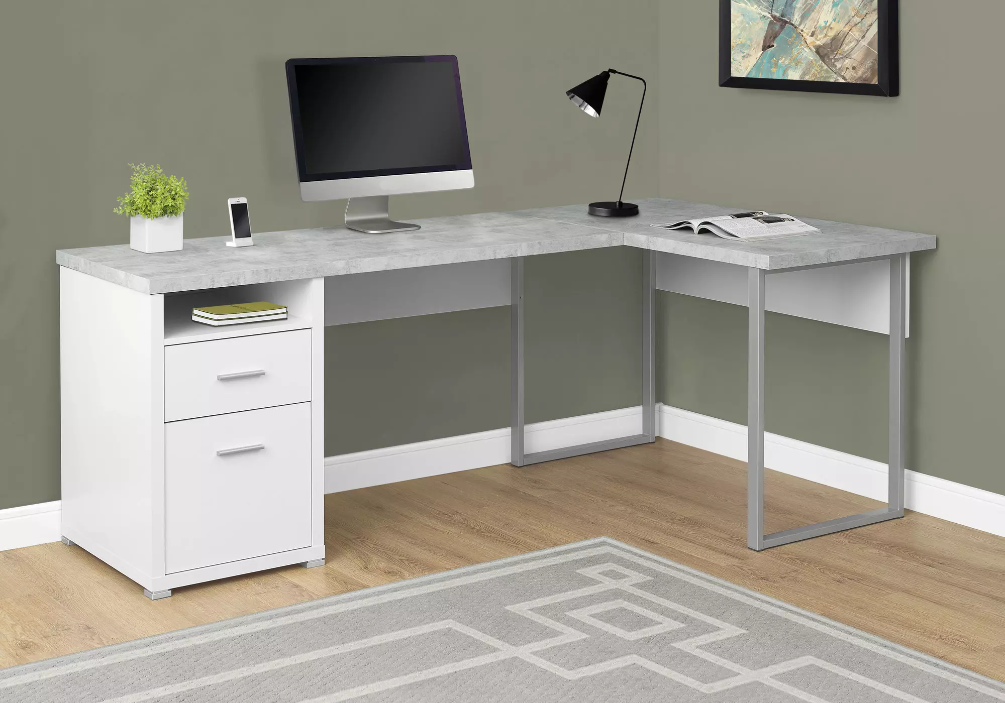 computer desk - 80 l white - cement-look left-right face by monarch specialties