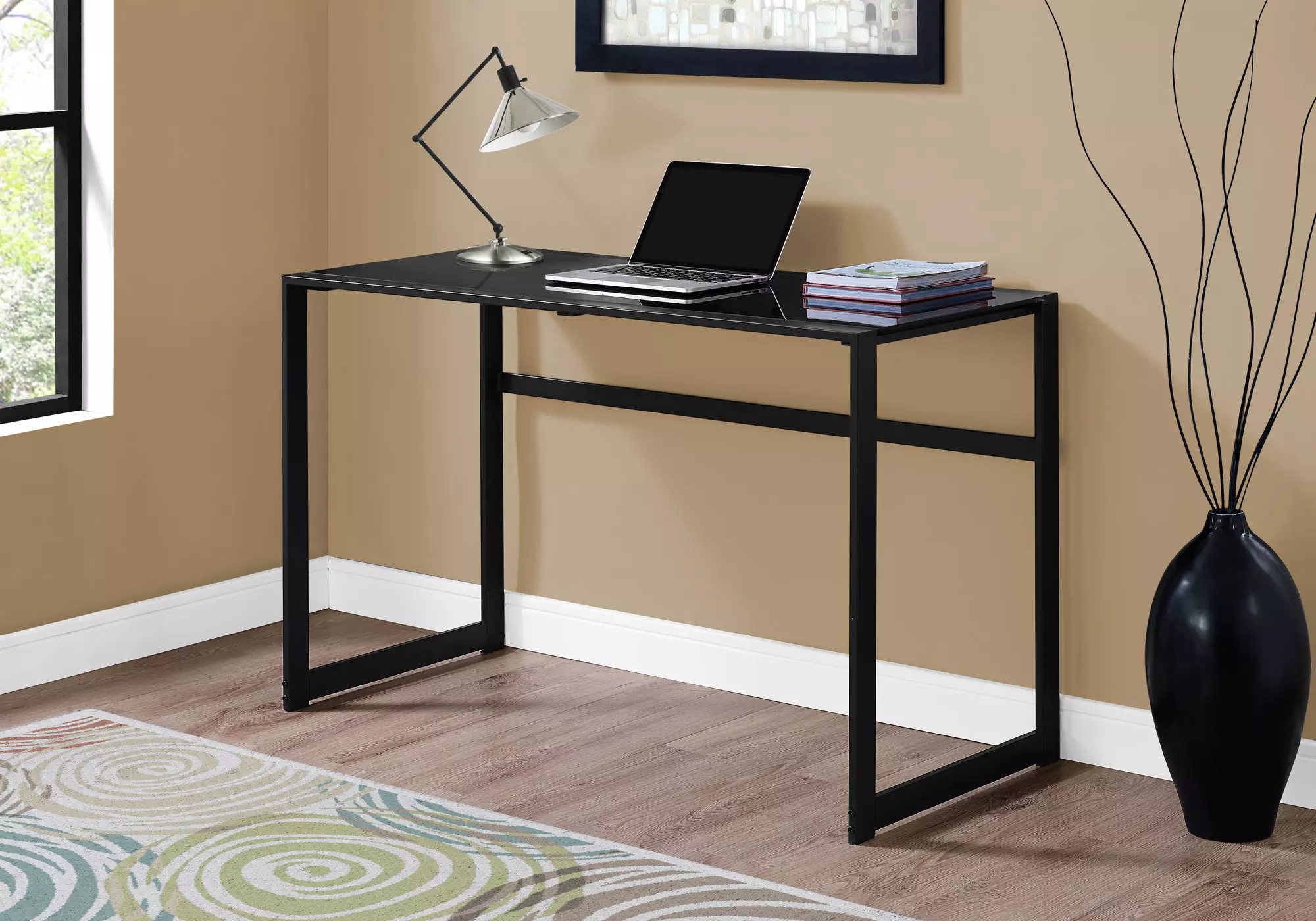 computer desk - 48 l - black metal - black tempered glass by monarch specialties