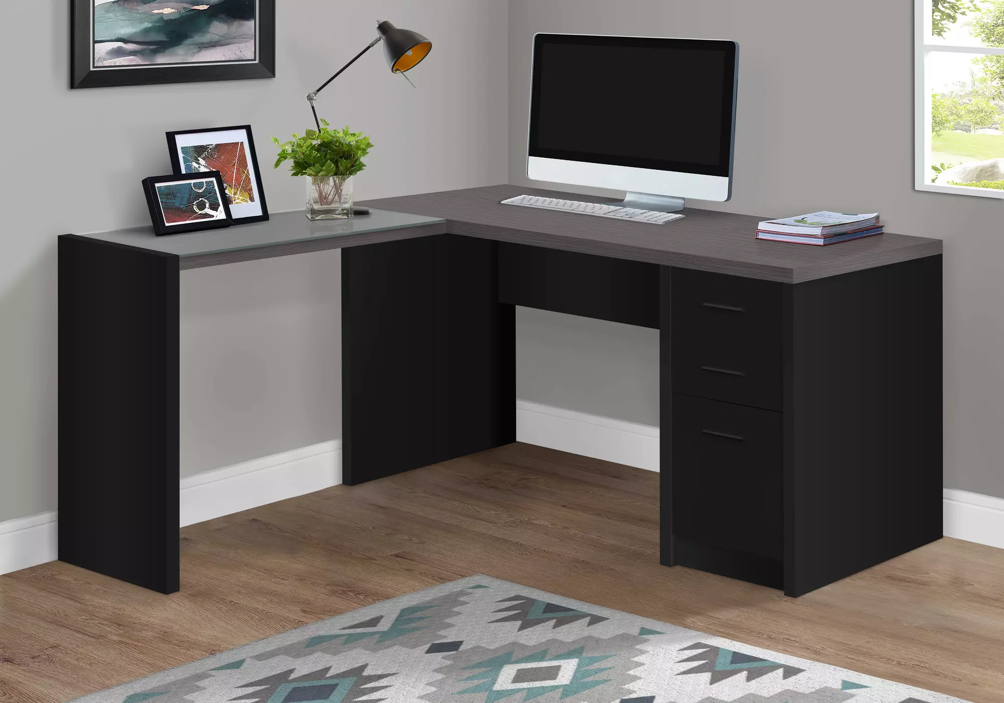 computer desk - black - grey top corner w- tempered glass by monarch specialties