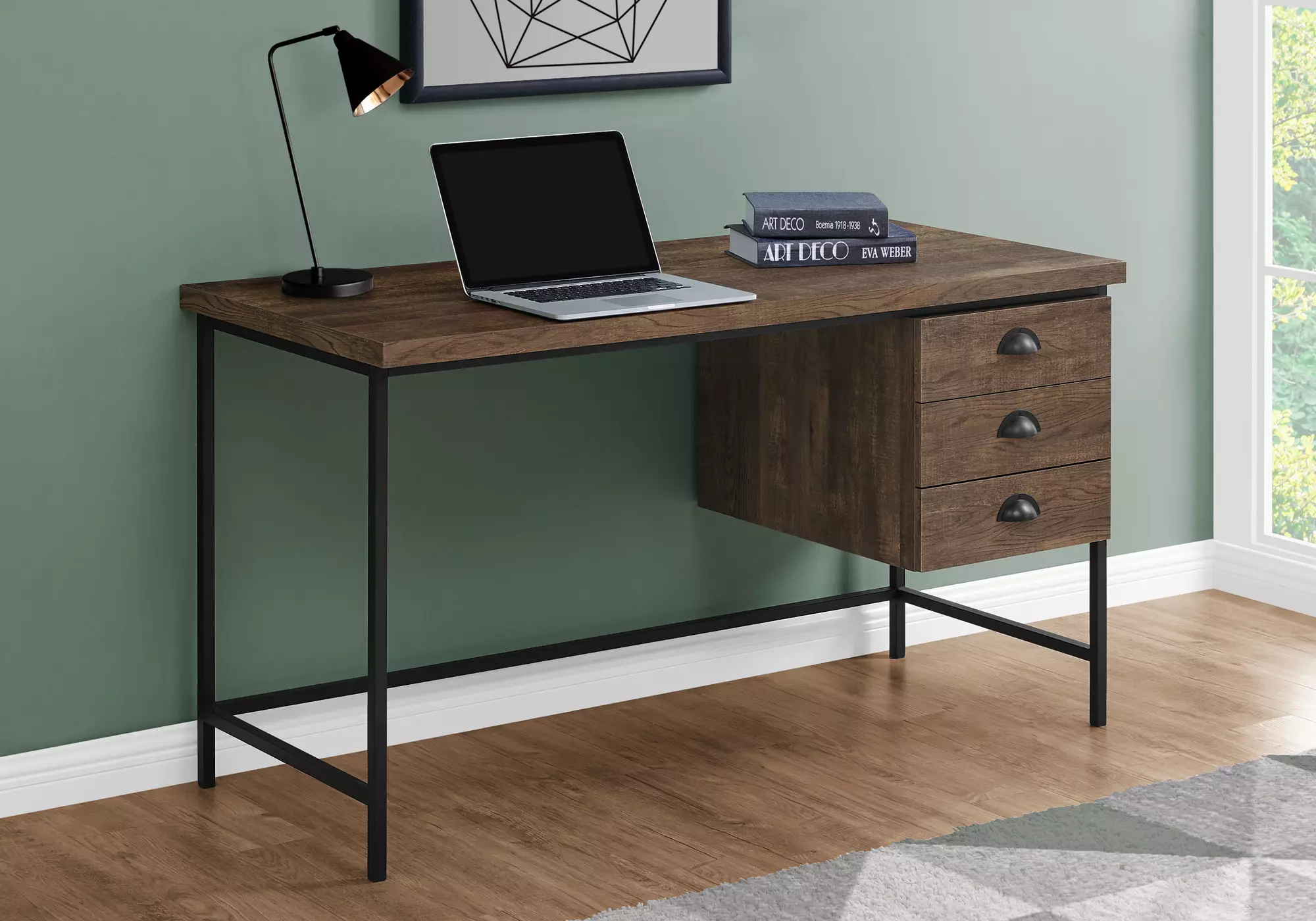 computer desk - 55 l - brown reclaimed wood - black metal by monarch specialties