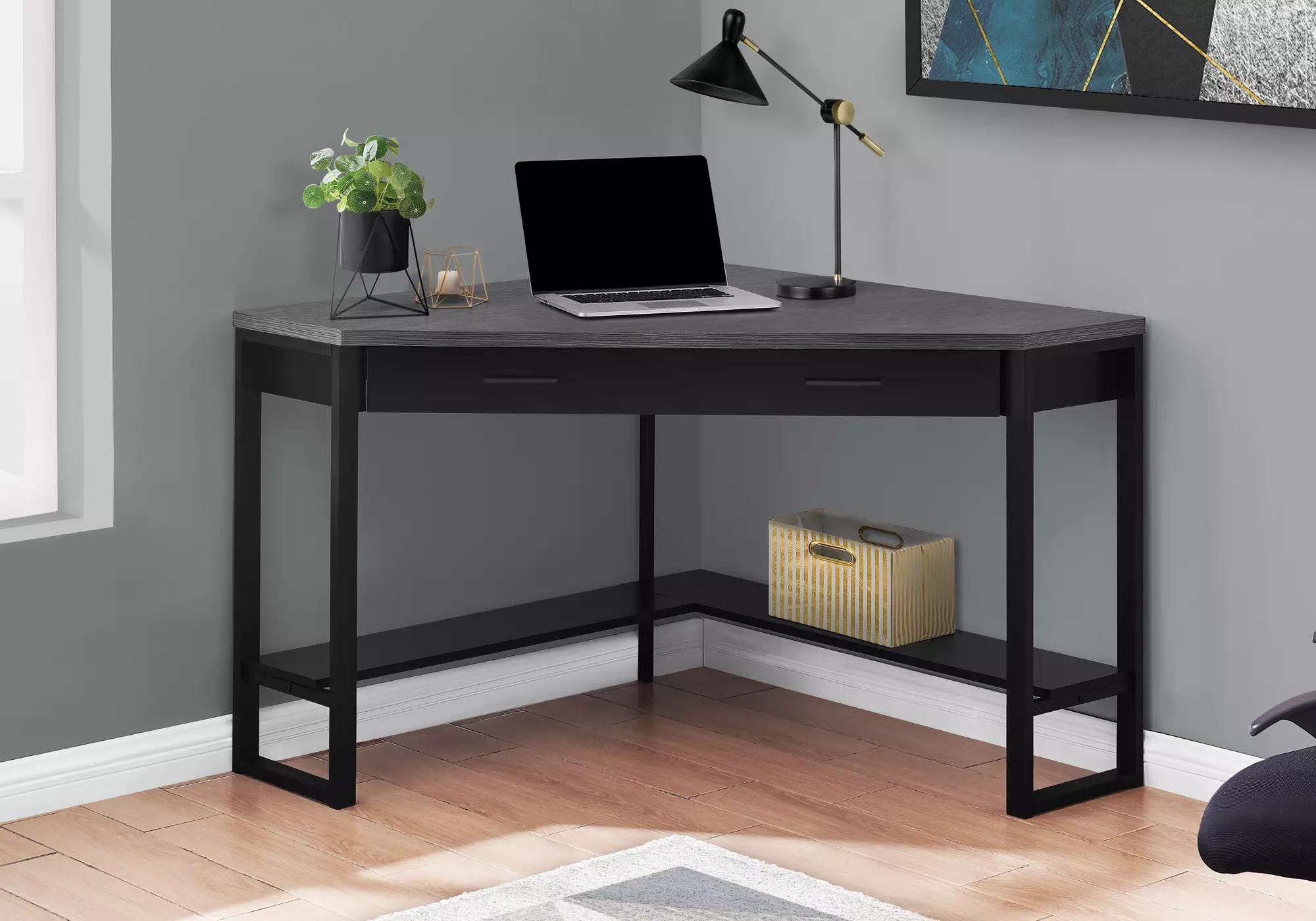 computer desk - 42 l - black - grey top corner - black by monarch specialties