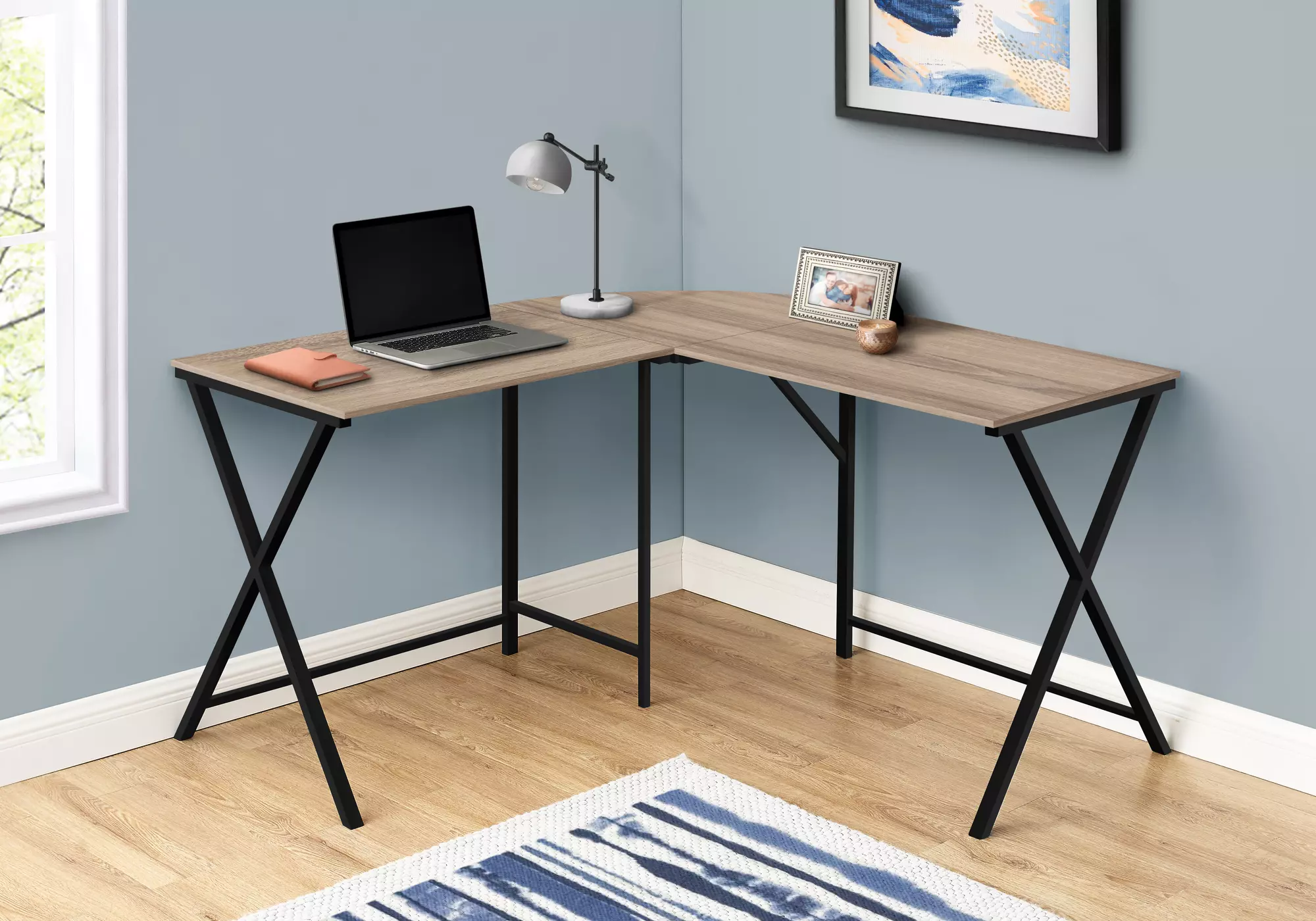 computer desk - 55 l - dark taupe top- black metal corner by monarch specialties