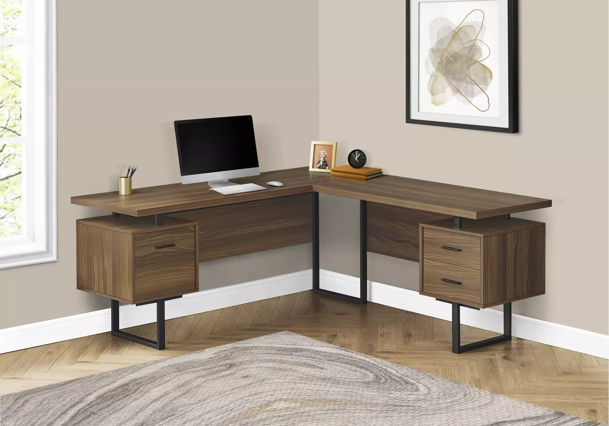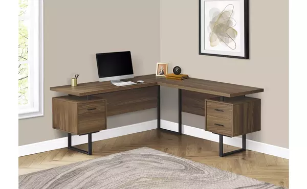 computer desk - 70 l - walnut - black metal - l-r face by monarch specialties (I7610)