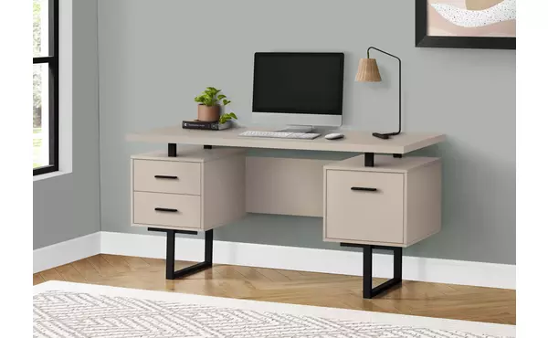 computer desk - 60 l - modern taupe - black metal by monarch specialties (I7629)