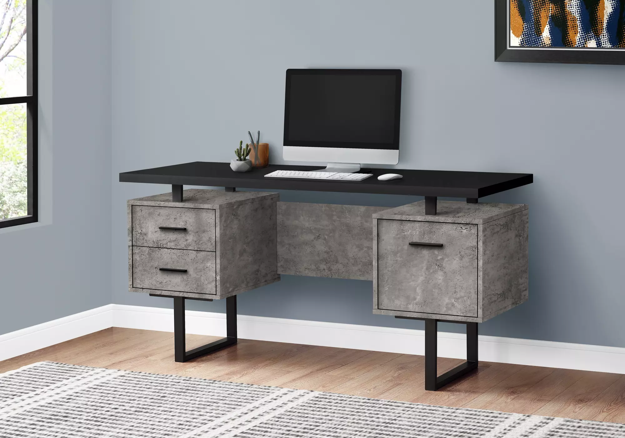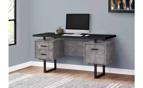 computer desk - 60 l - black - grey concrete - black metal by monarch specialties (I7632)