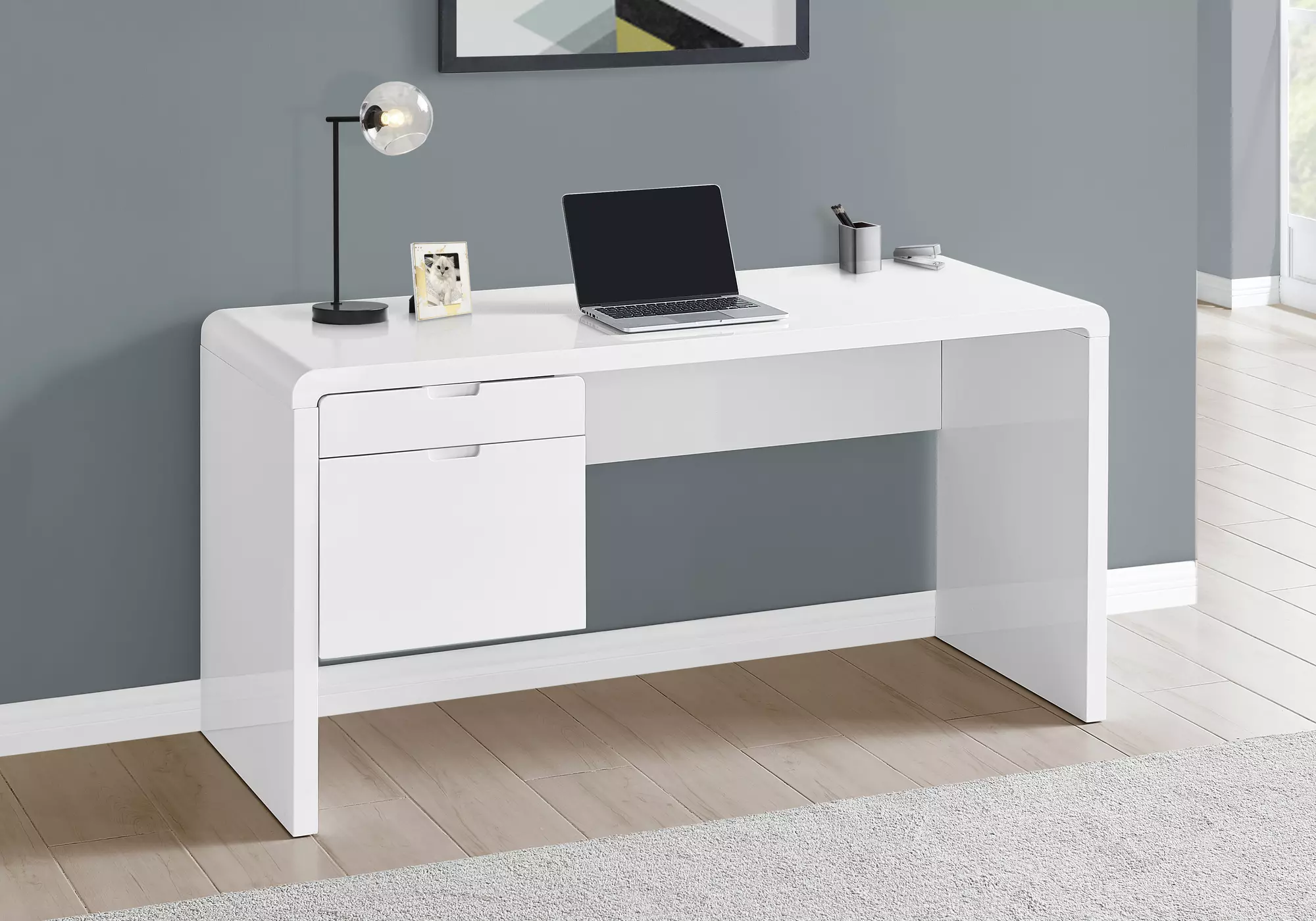 computer desk - 60 l - high glossy white l-r face drawer by monarch specialties (I7581)