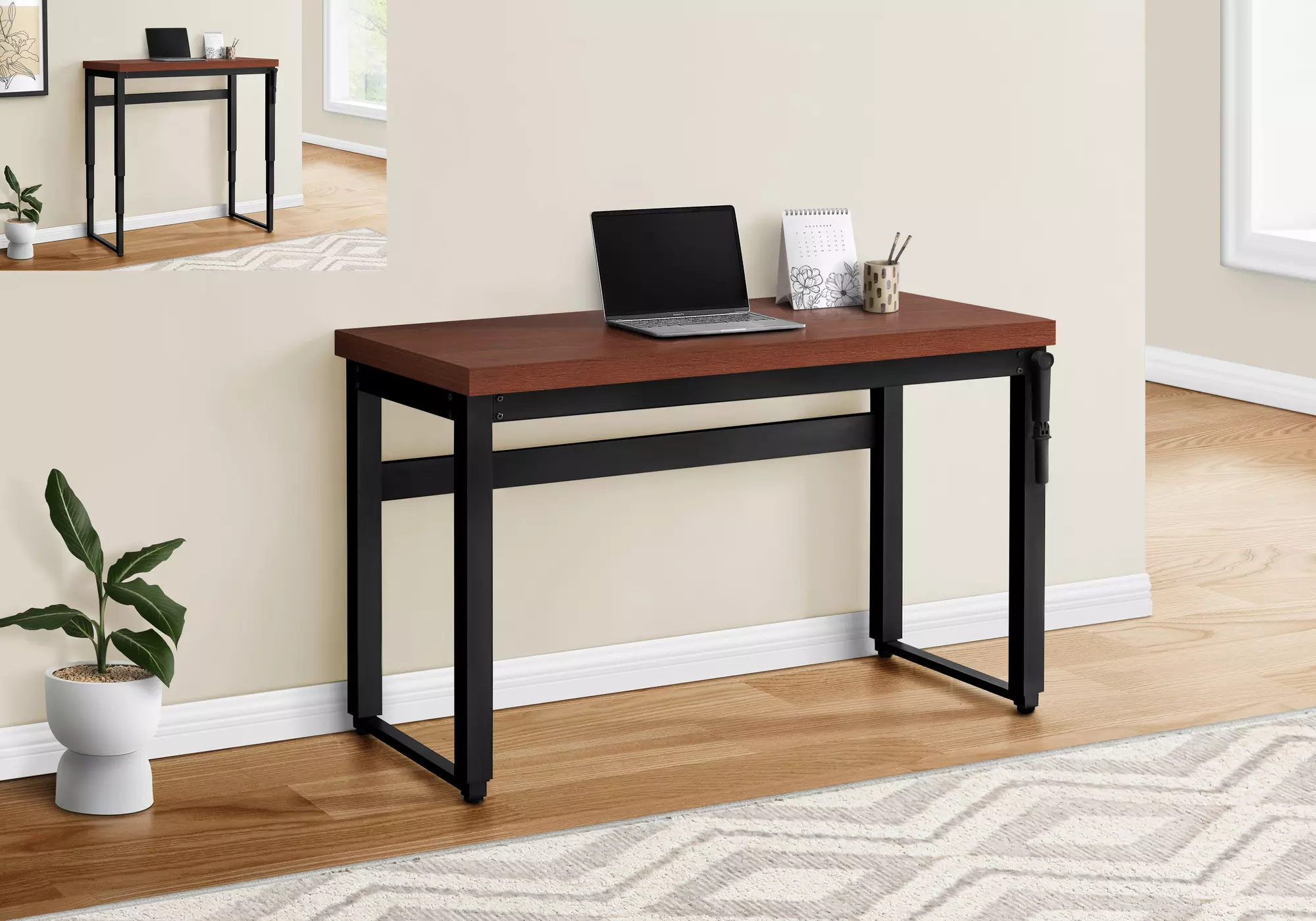 computer desk - 48 l - cherry - adj.height- black metal by monarch specialties (I7676)